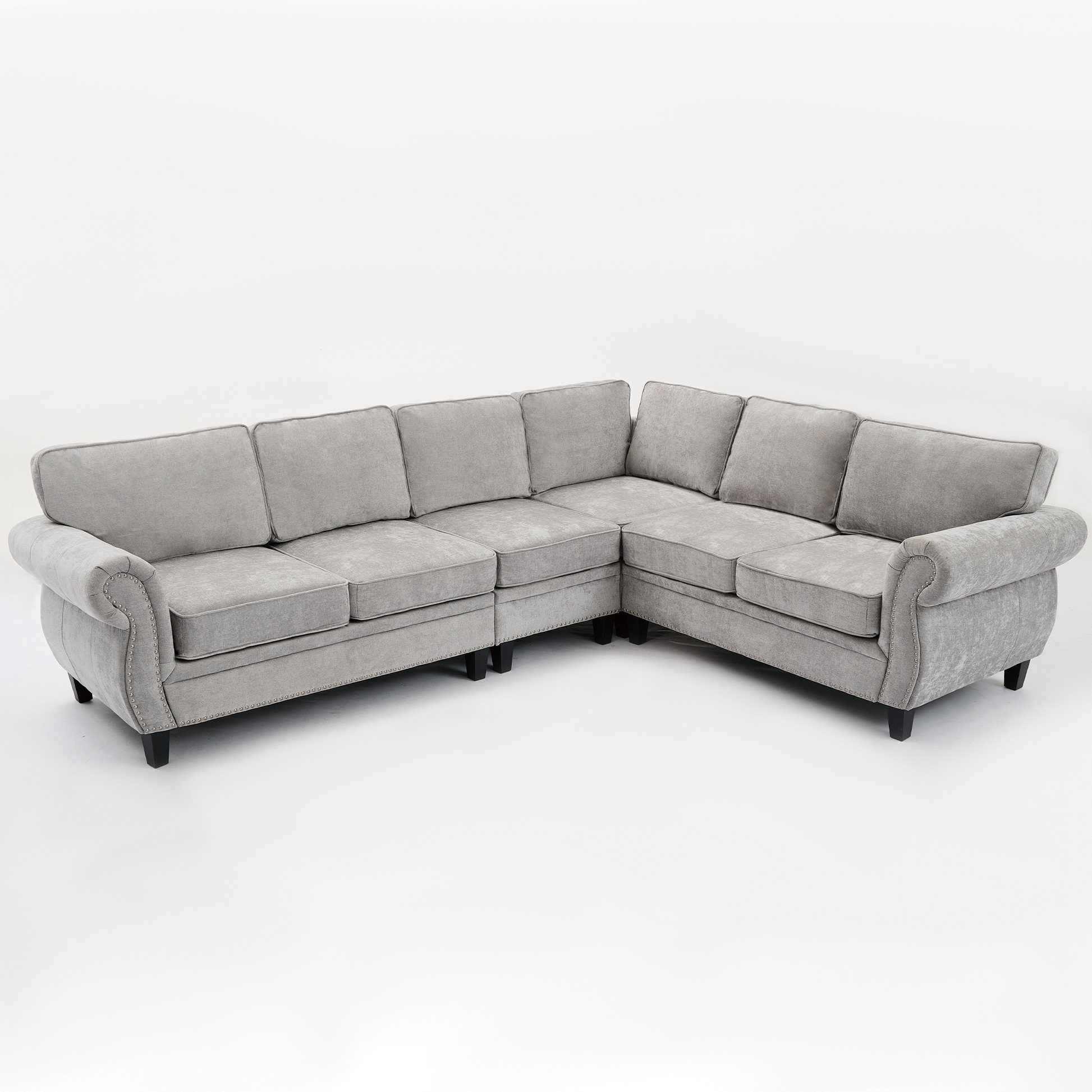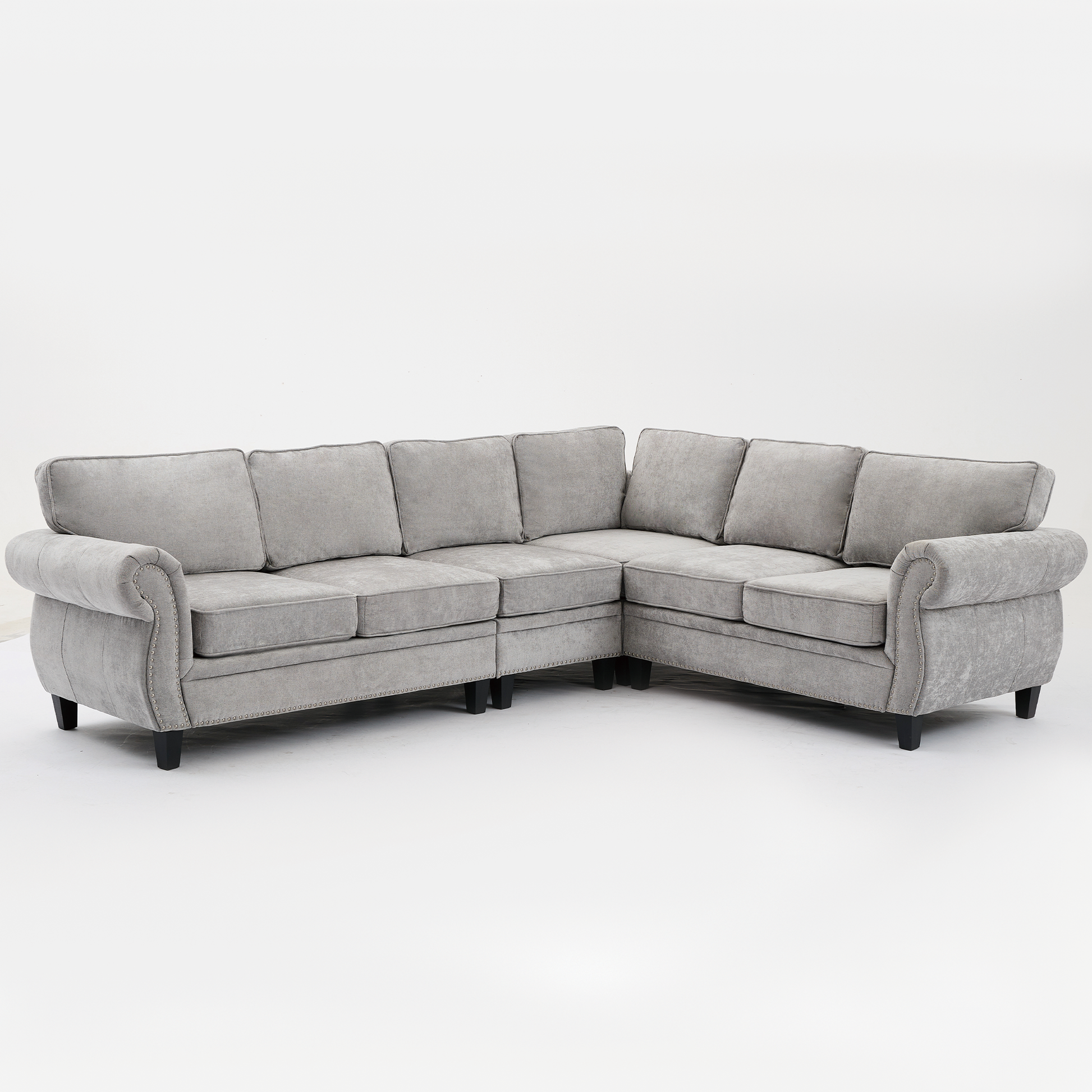 109.5' Modular Sectional Sofa , Rivets Decorated & Rolled Armrest,L Shaped Couch for Living Room, Corner Couch, Chenille