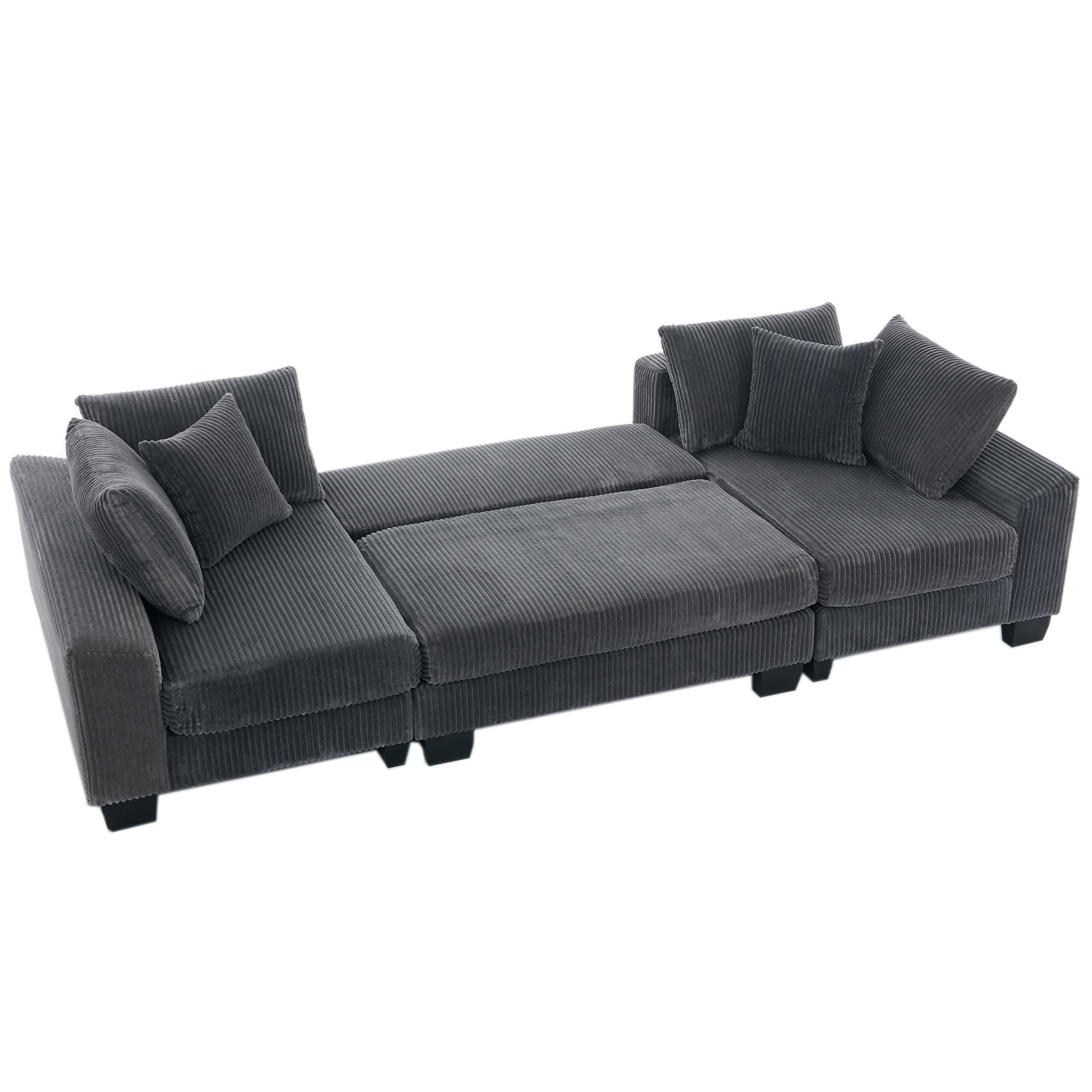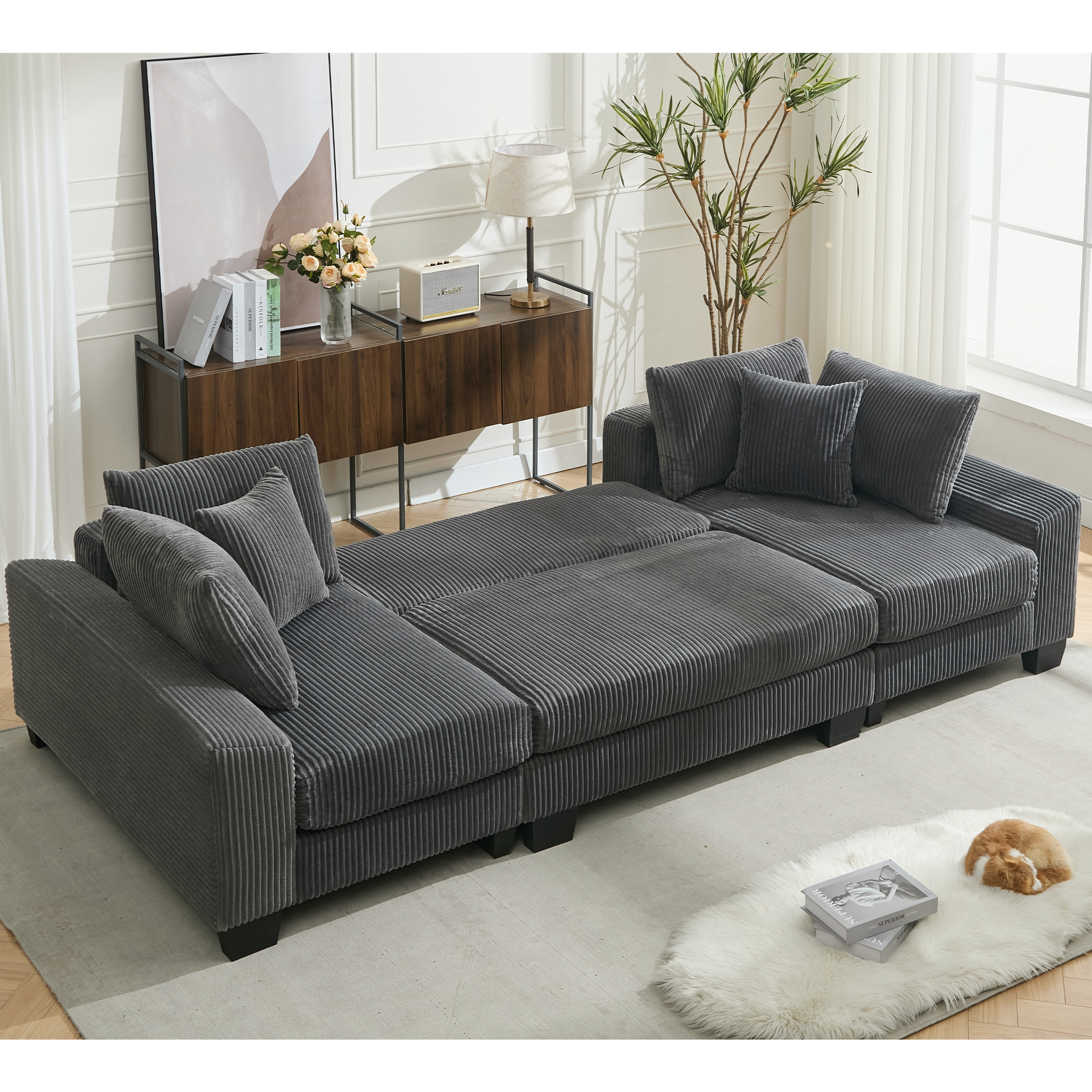 - 【Pillow and back cushion】The Corduroy Sectional Sofa Couch comes with 4 back cushion, 2 pillowsoption for your living room, office or apartment.