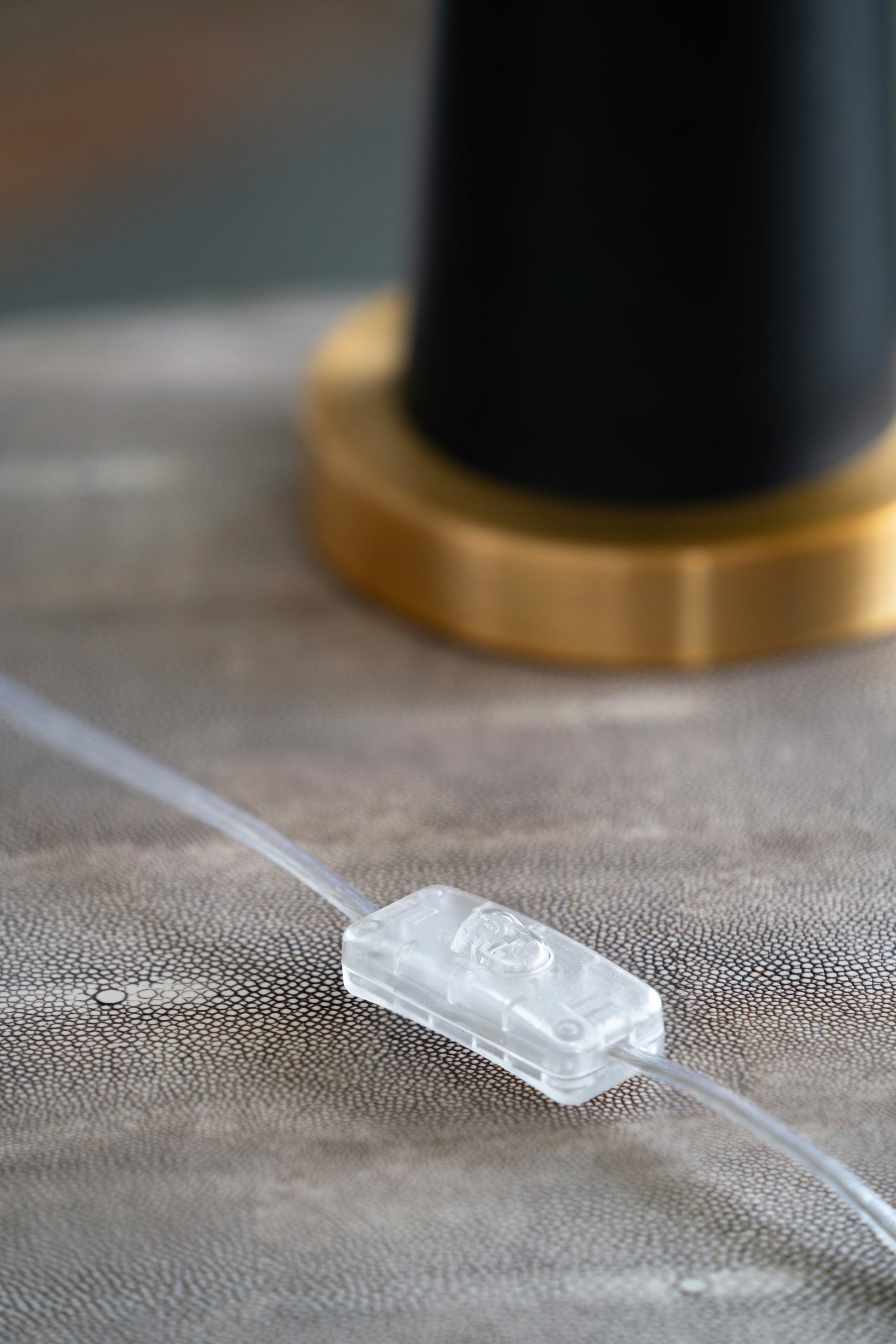 - This elongated teardrop table lamp in gold and black uses minimalist forms to create a refined elegance for the ages.
