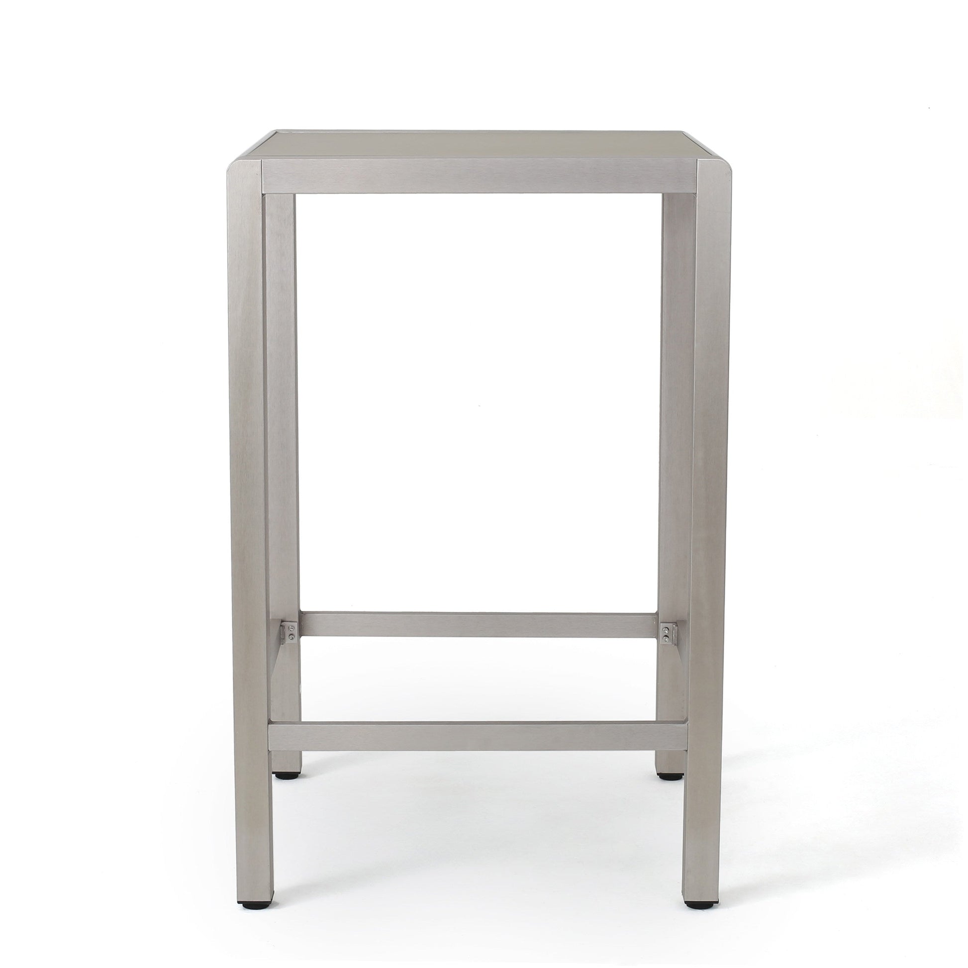 43' Outdoor Aluminum Frame Bar Table With Glass Table Top, Grey Finish