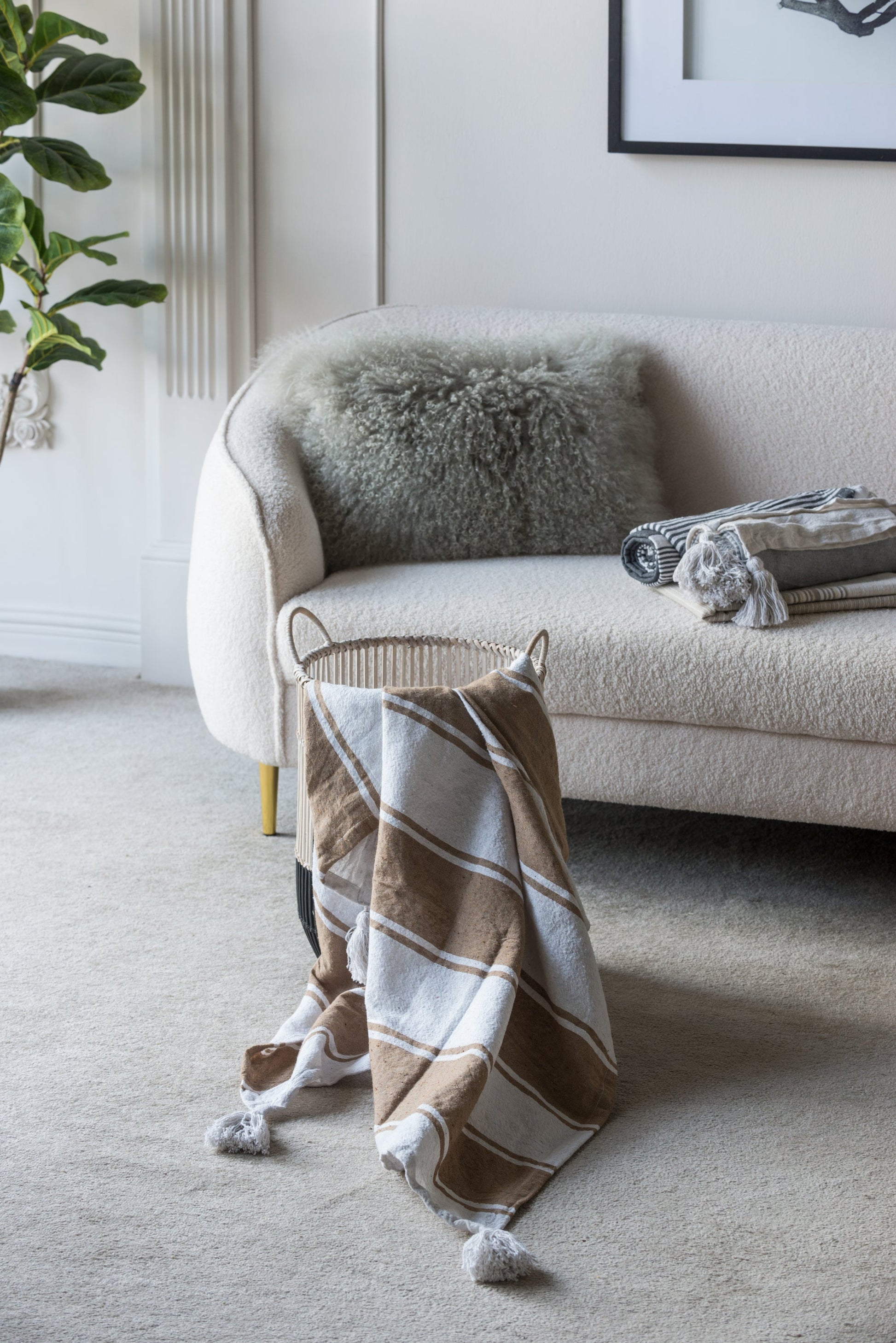 Measuring at 50W x 60L, this decorative throw blanket features a varied display of brown thin and block stripes across the white hue. More than just protection from the cold, it could also be used as an accent piece on your sofa, bed or wherever you choose. Thanks to the neutral colors, it can easily slot into any style and decor.