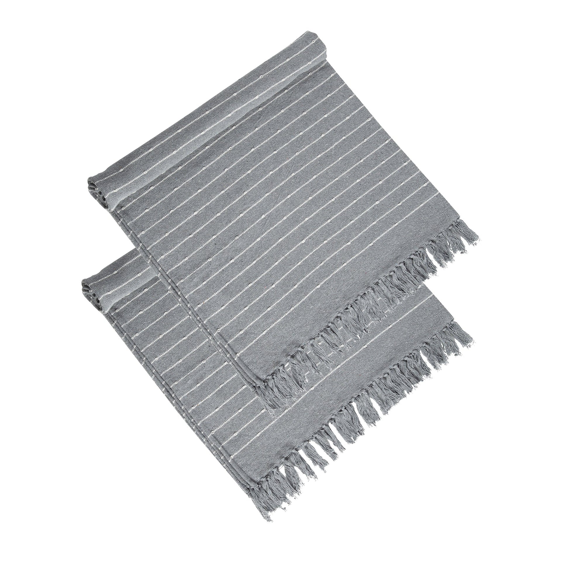 50x60' Gray Striped Decorative Throw Blanket With Tassels and Horizontal Stripes, 2 Pack