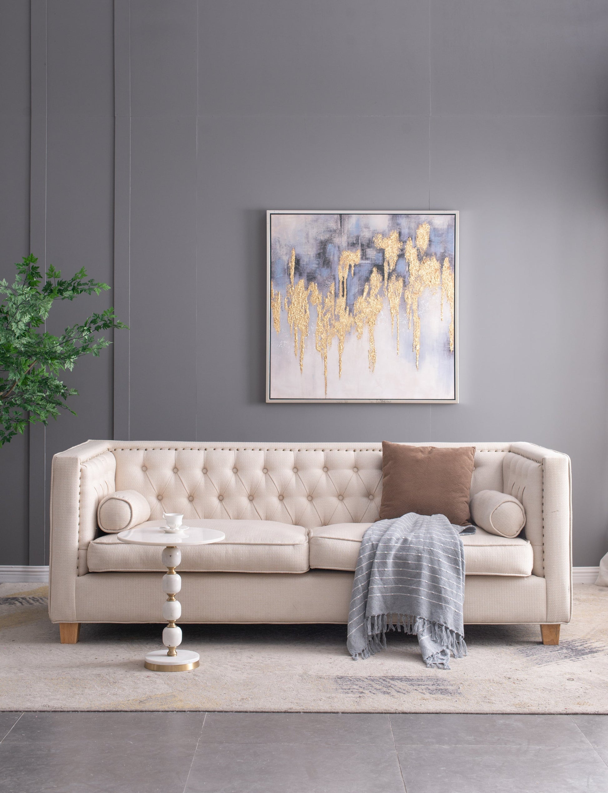 - The neutral colorway of the blanket allows it to seamlessly complement a wide variety of interior styles.