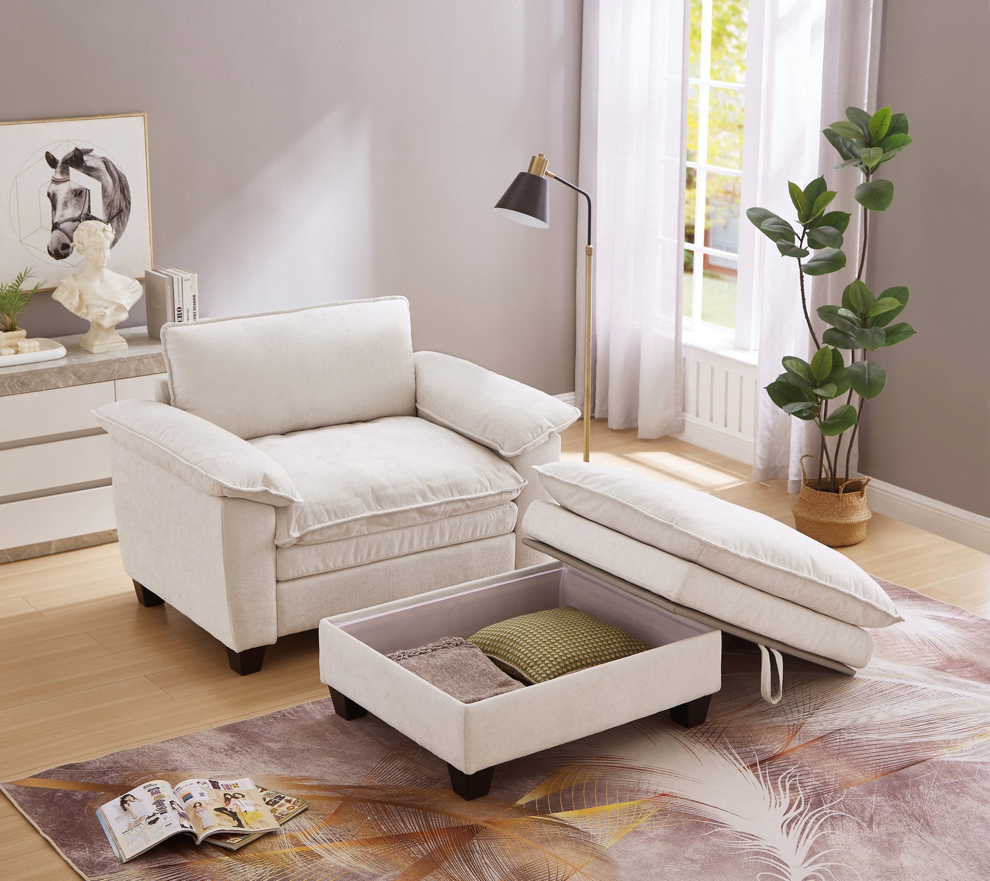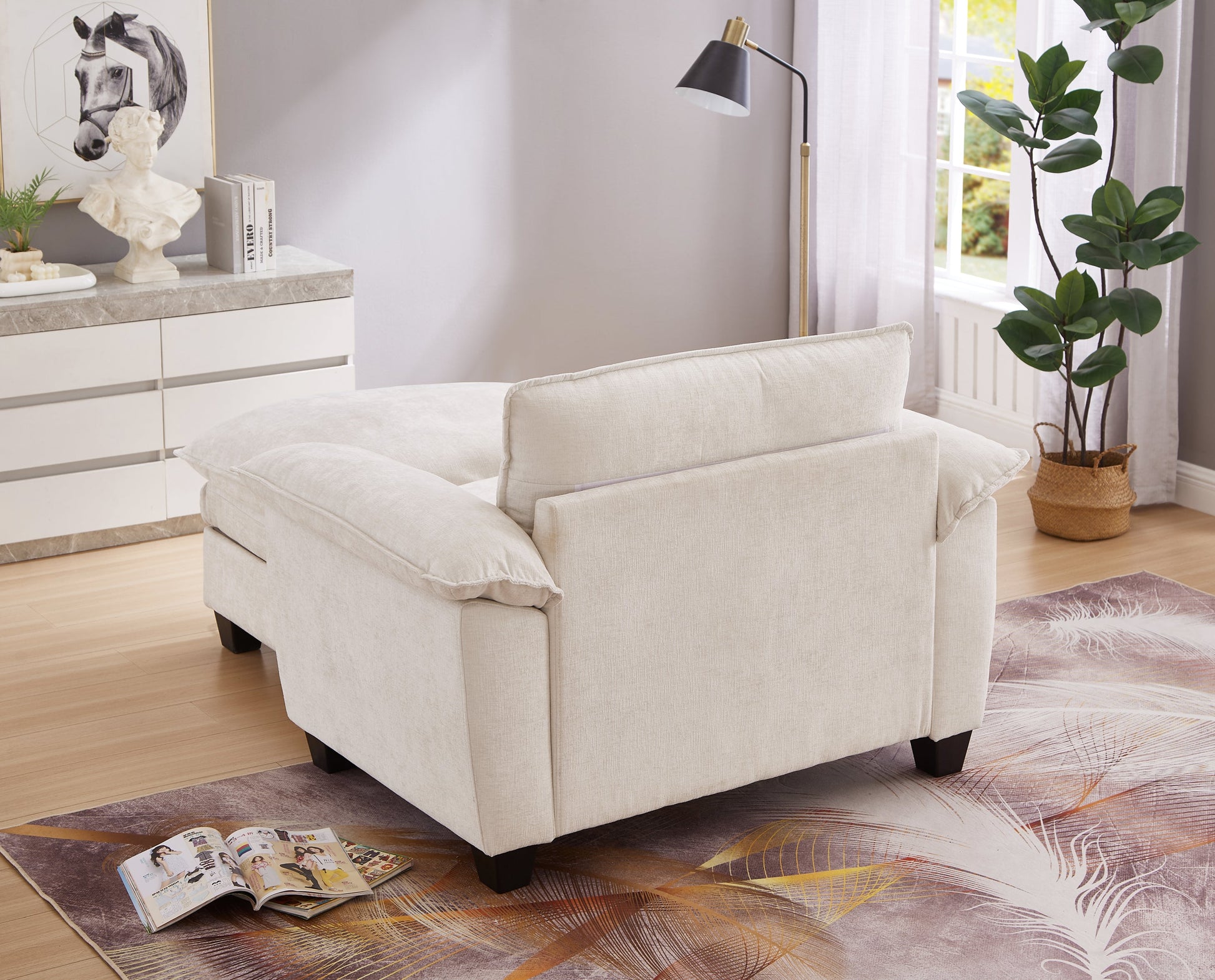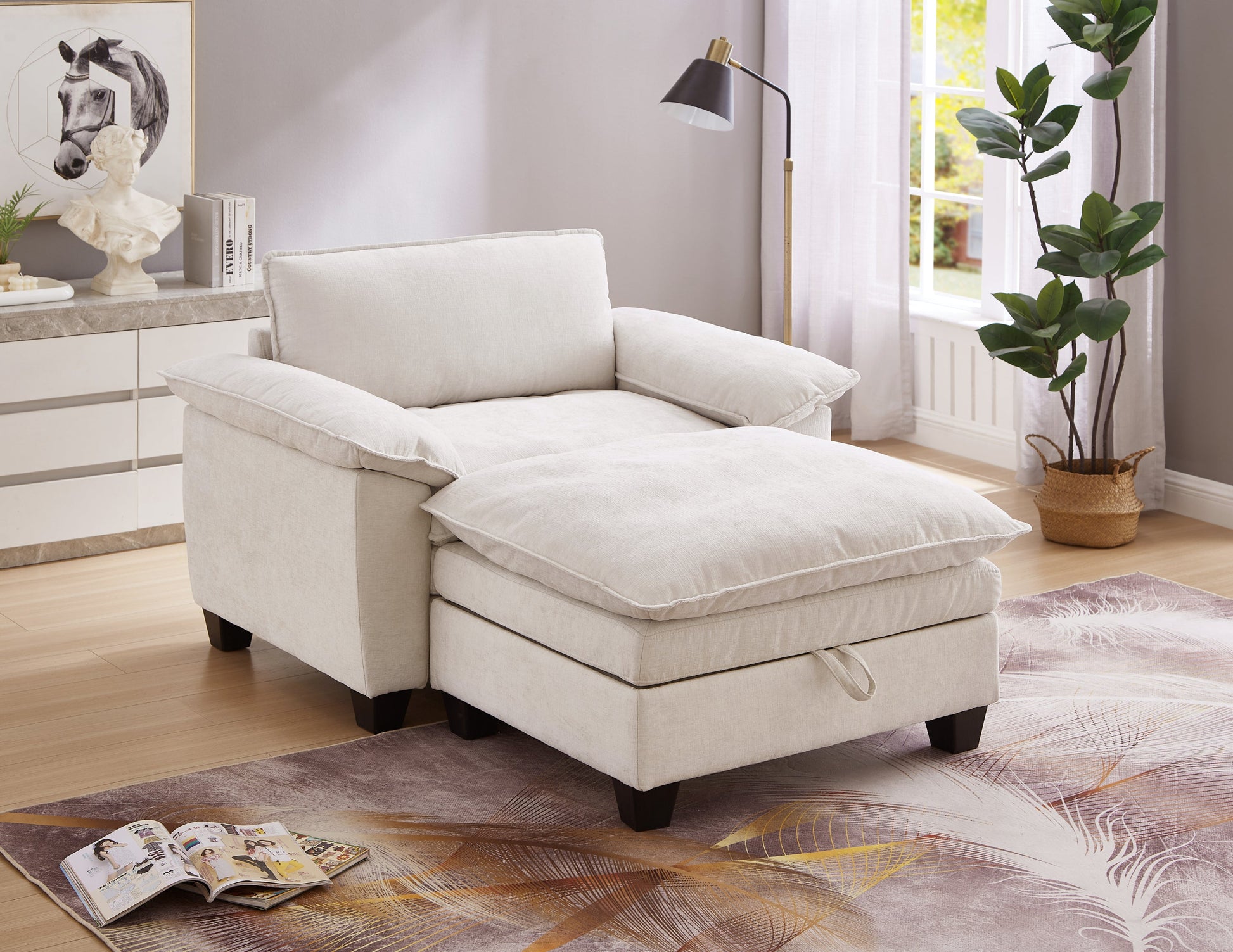 51' Oversize Chaise Lounge Chair With Ottoman and Storage Upholstered Soft Chenille Beige
