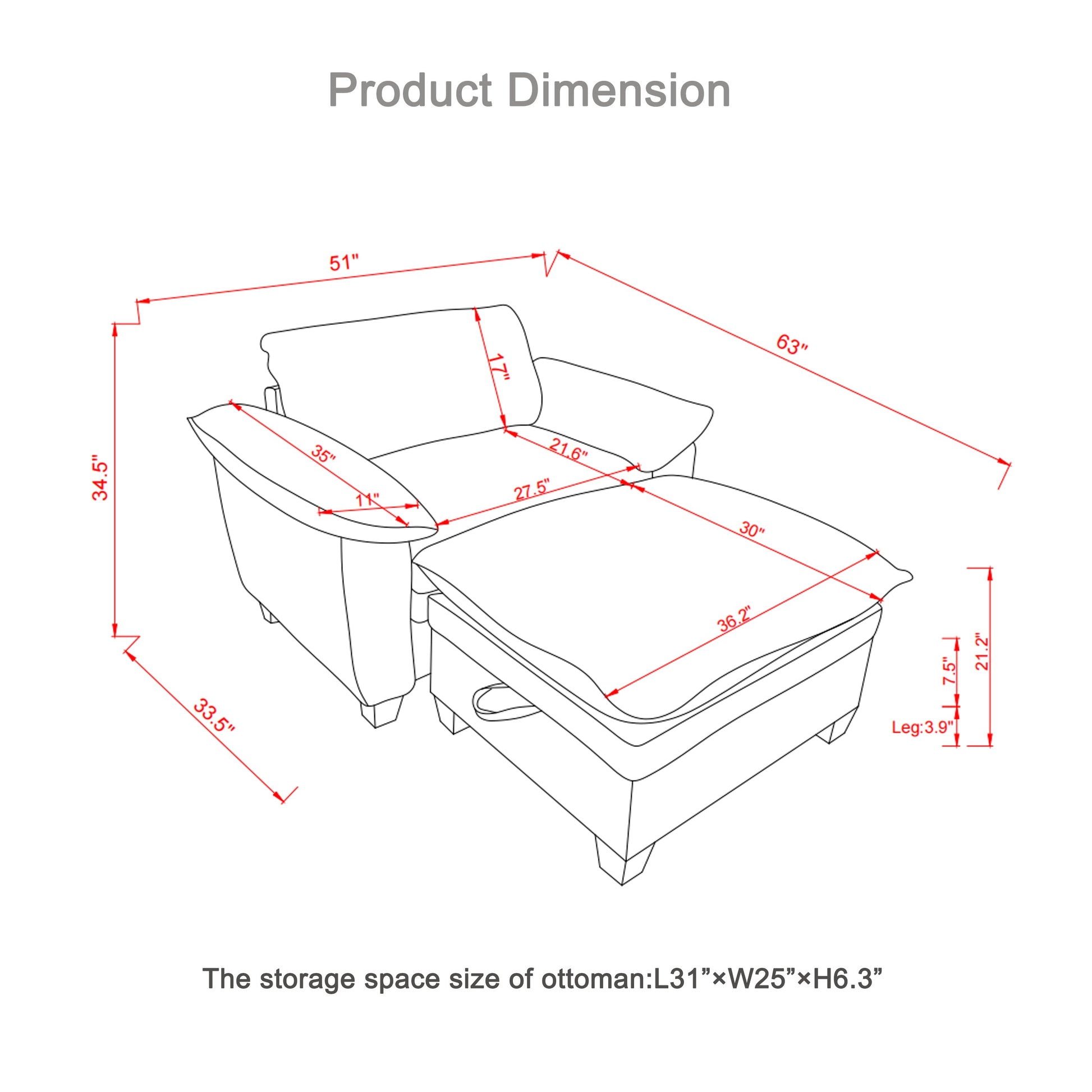 - Easy to assemble: The sofa needs to be assembled, and all accessories can be found at the bottom of the sofa seat frame and in the ottoman storage space. Simply follow the instructions to easily complete the assembly in 30 minutes.