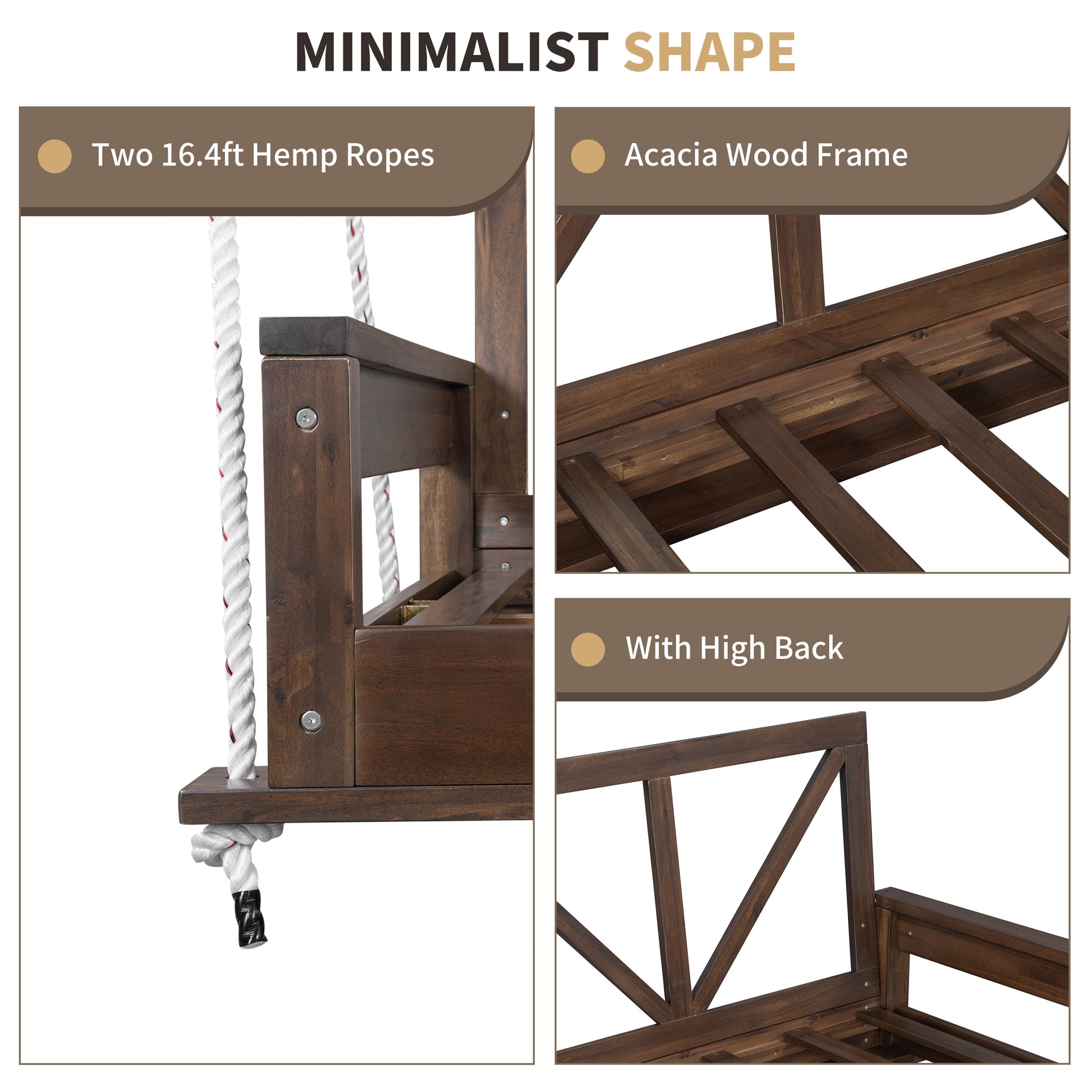 Acacia Wood Twin Size Patio Swing Bed Modern Porch Swing Hanging Bed Frame With 16.4ft Hemp Ropes for Garden,Backyard,Br