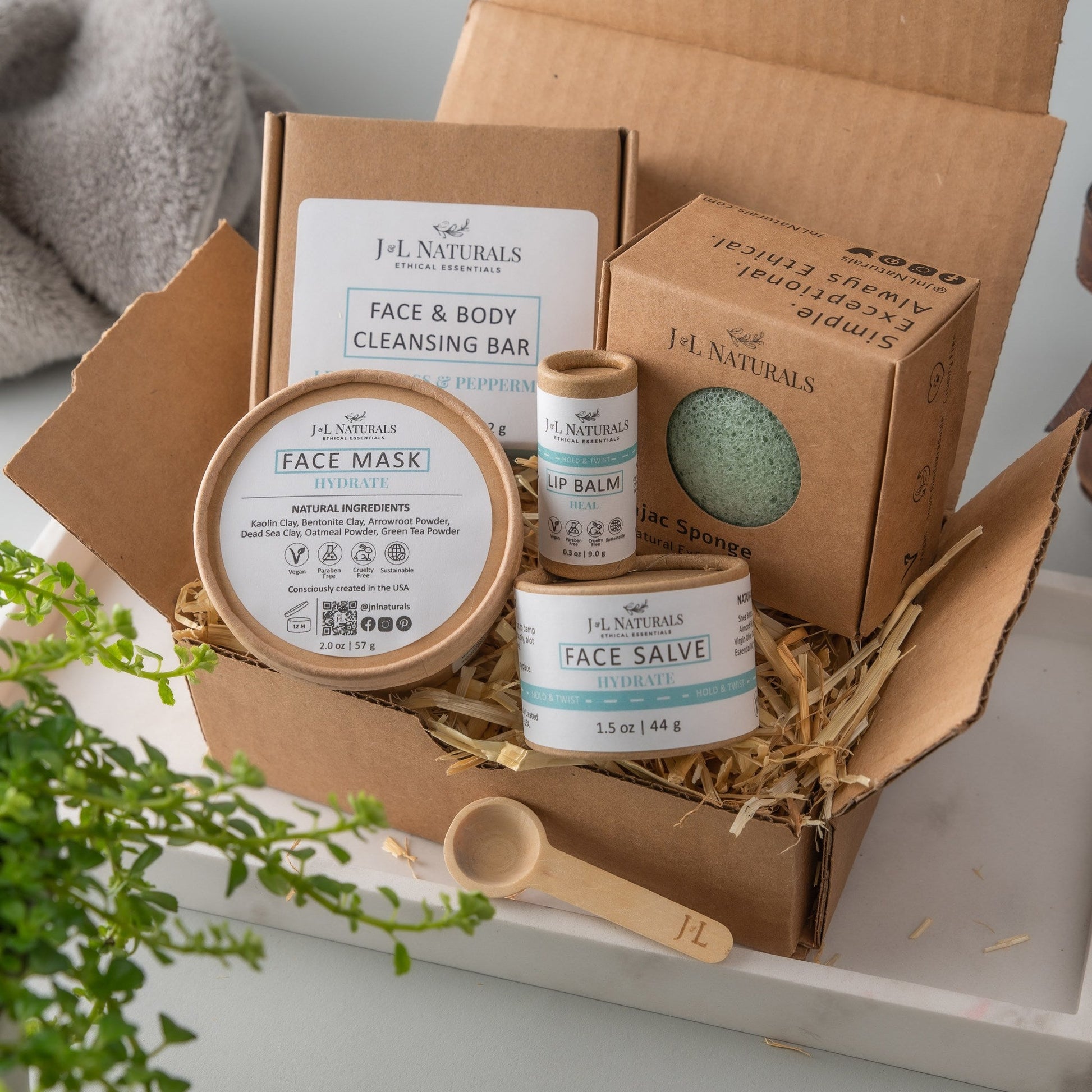 Includes: (1) Cleansing Bar, (1) Konjac Sponge, (1) Face Salve, (1) Face Mask, (1) Lip Balm