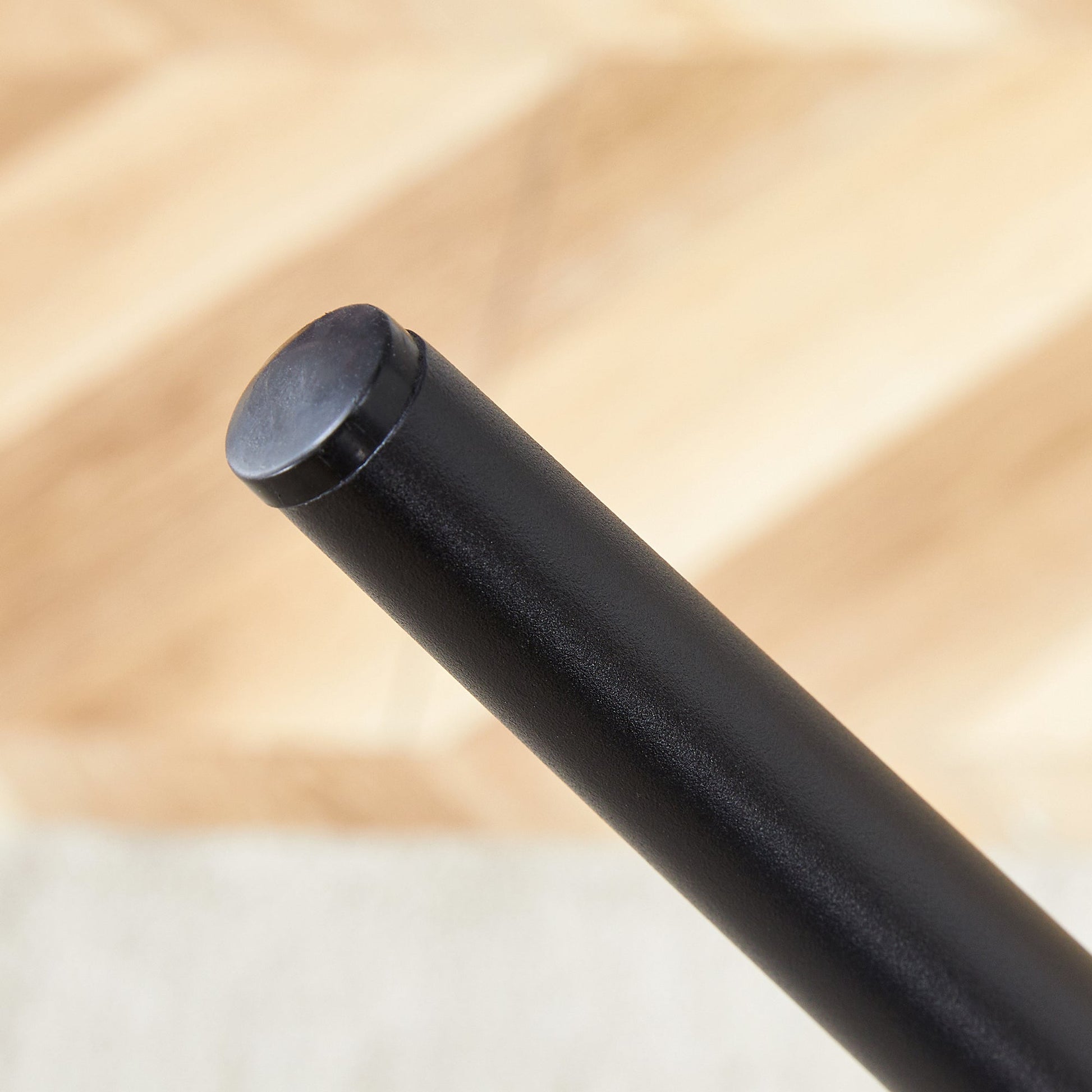 - Black Metal Legs: The chairs feature black metal legs, sturdy and durable, contrasting beautifully with the brown seat pad.Cross Brace Reinforcement: There is a cross brace under the seat pad for reinforcement, enhancing the chair's stability and load-bearing capacity.