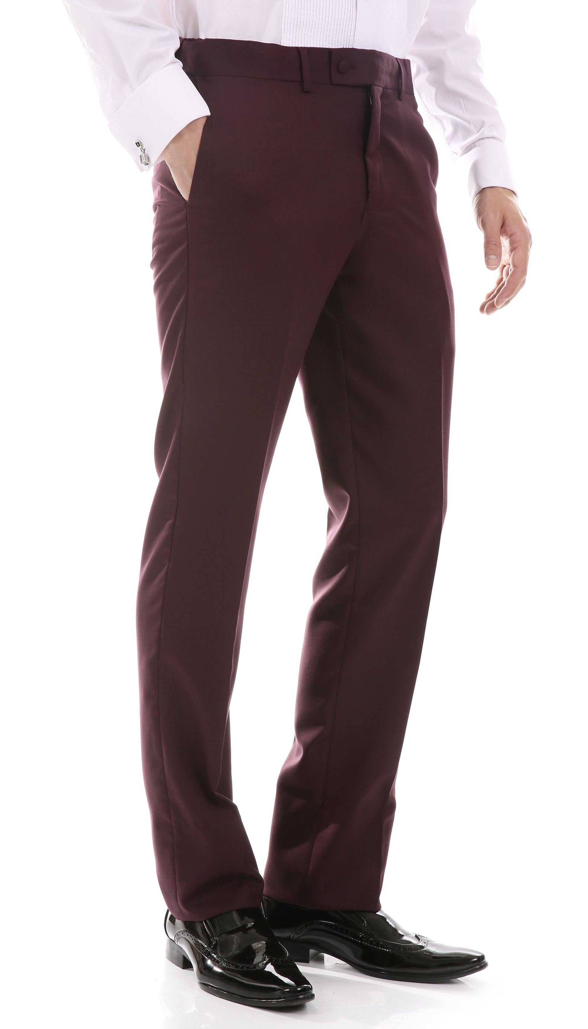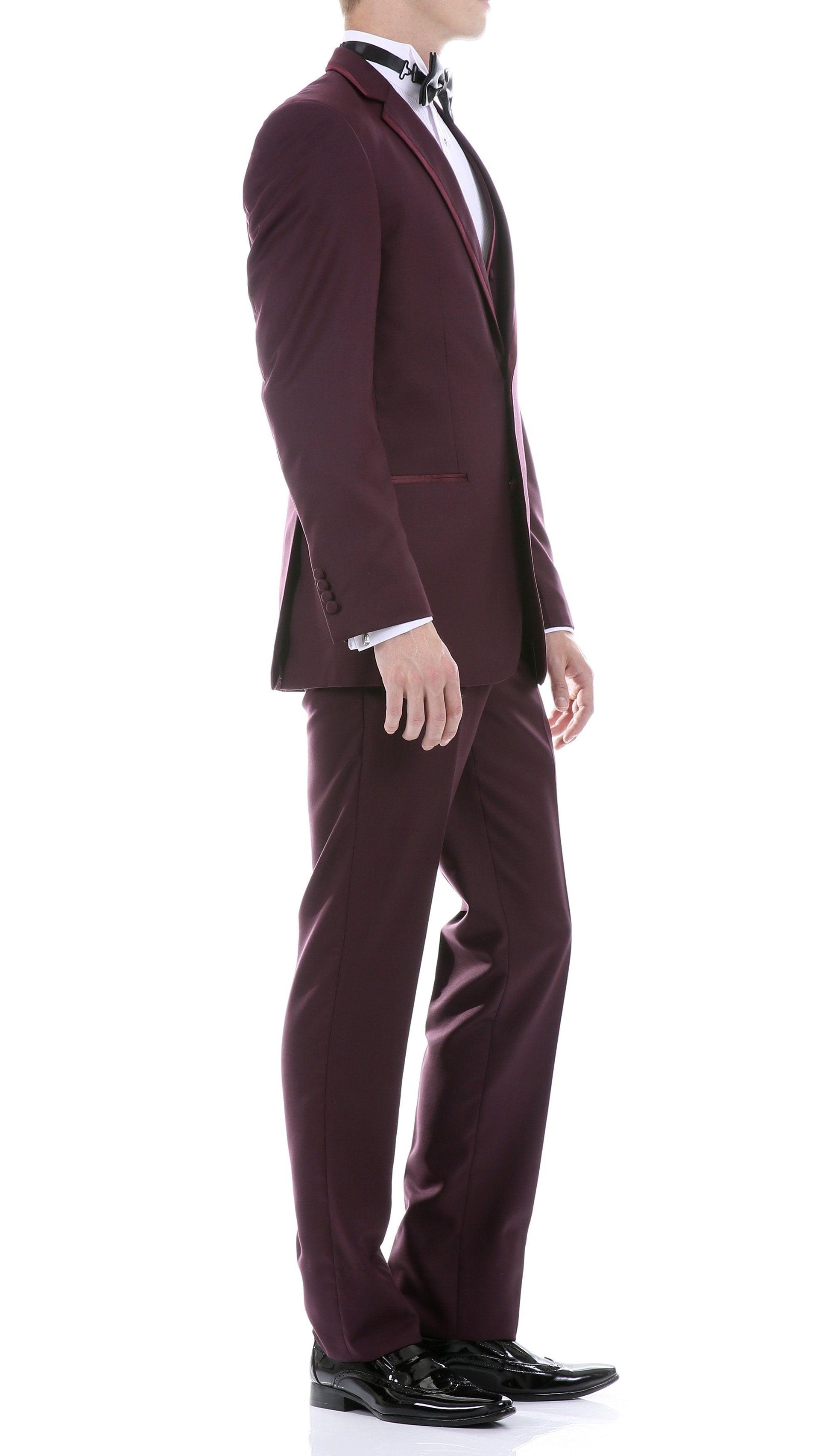 The Celio Burgundy Slim Fit 3 Piece Tuxedo by Ferrecci. Sophisticated and modern with a rich custom tailored look that is perfect for any formal occasion.