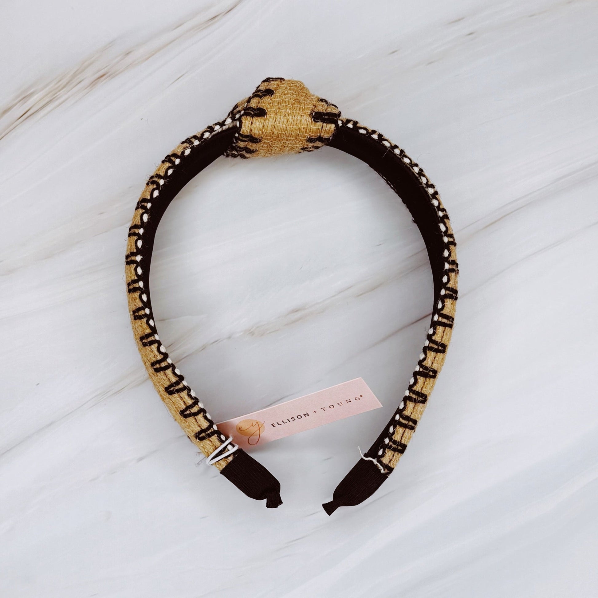Add a playful yet natural touch with the Color Stitched Raffia Headband. Featuring textured raffia with vibrant stitched detailing, this headband blends artisanal charm with a pop of color—perfect for sunny days and effortless style.