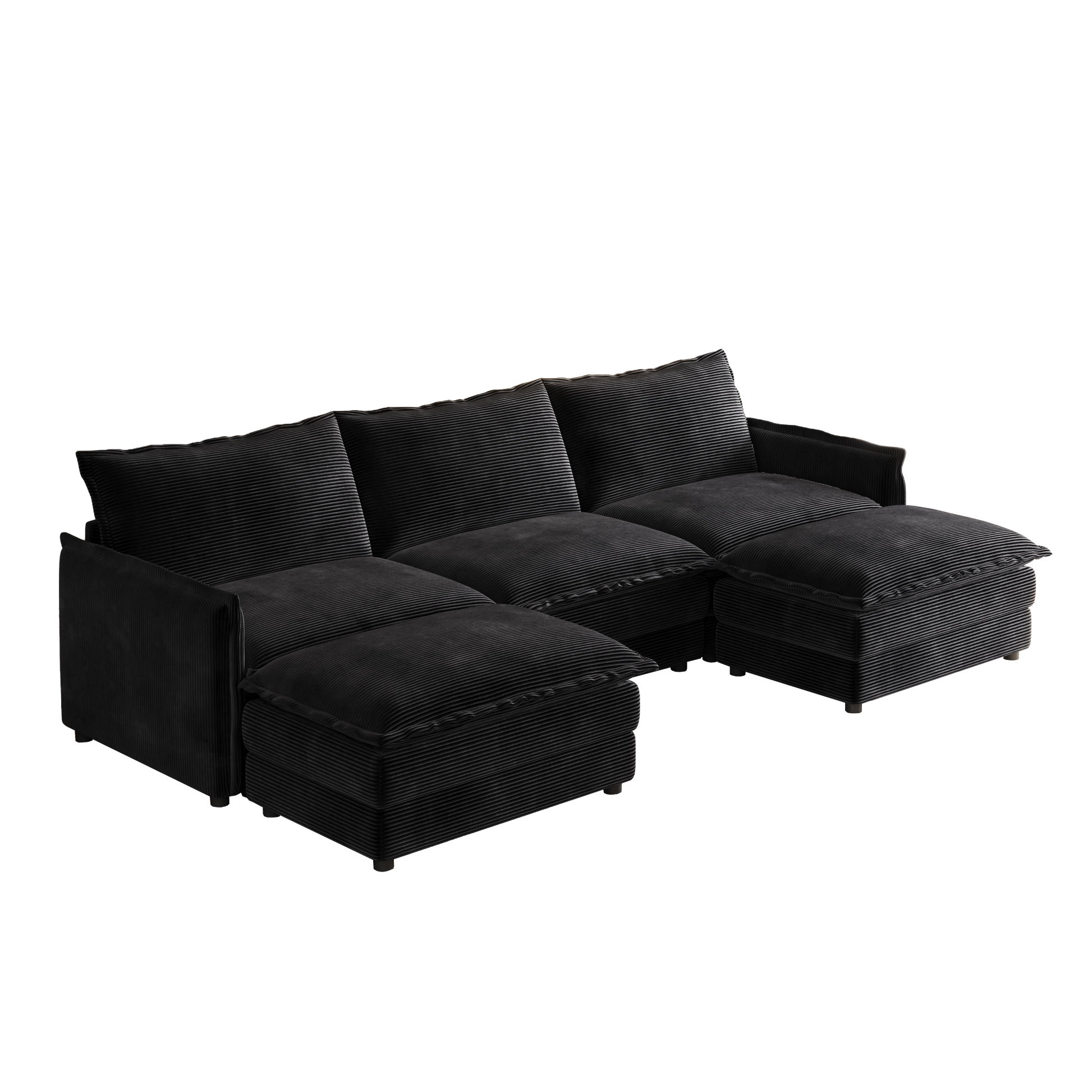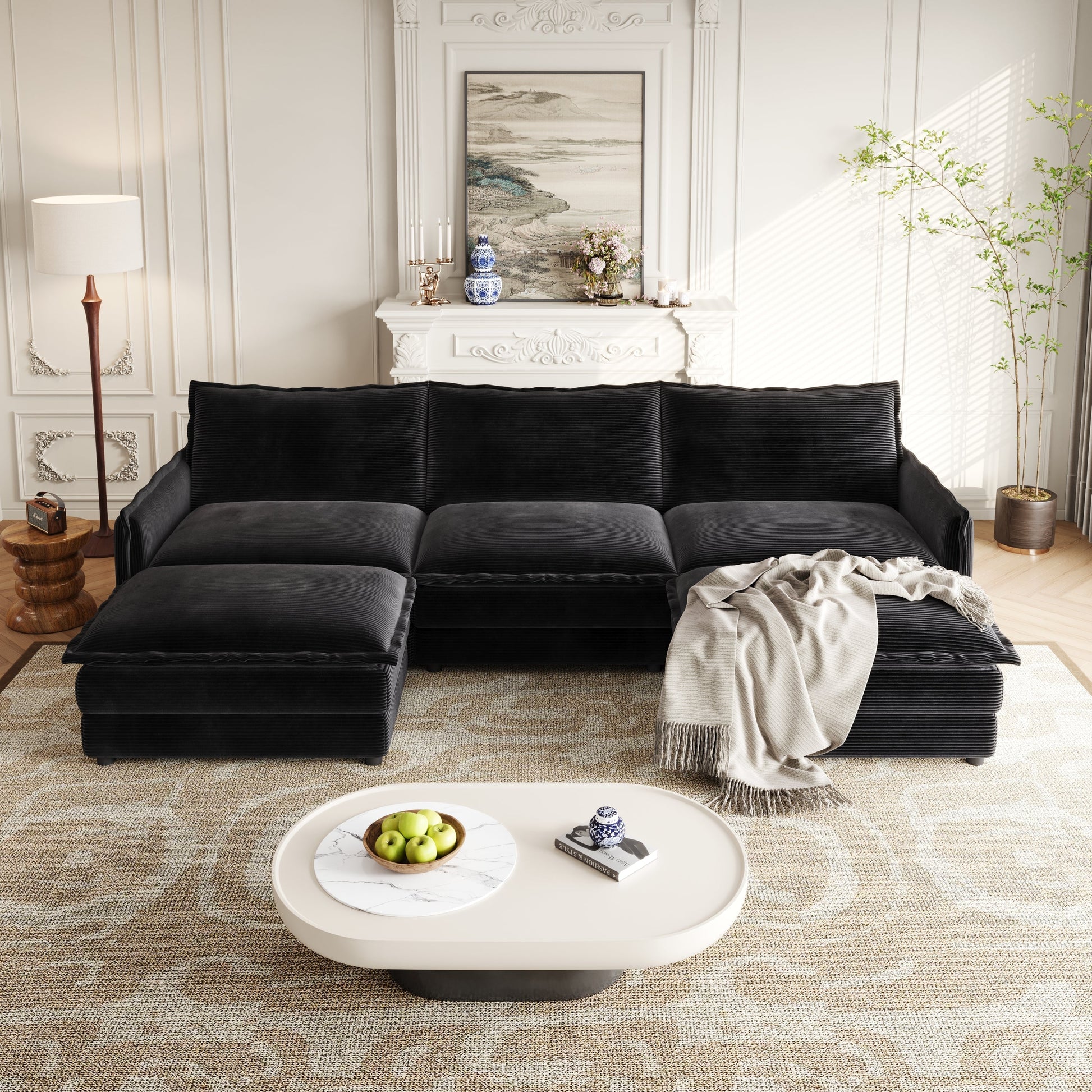 Corduroy Fabric 3-Seater Comfy Cloud Couch With 2 Movable Footrest for Living Room,Oversized Deep Seat U Shaped Couch Se