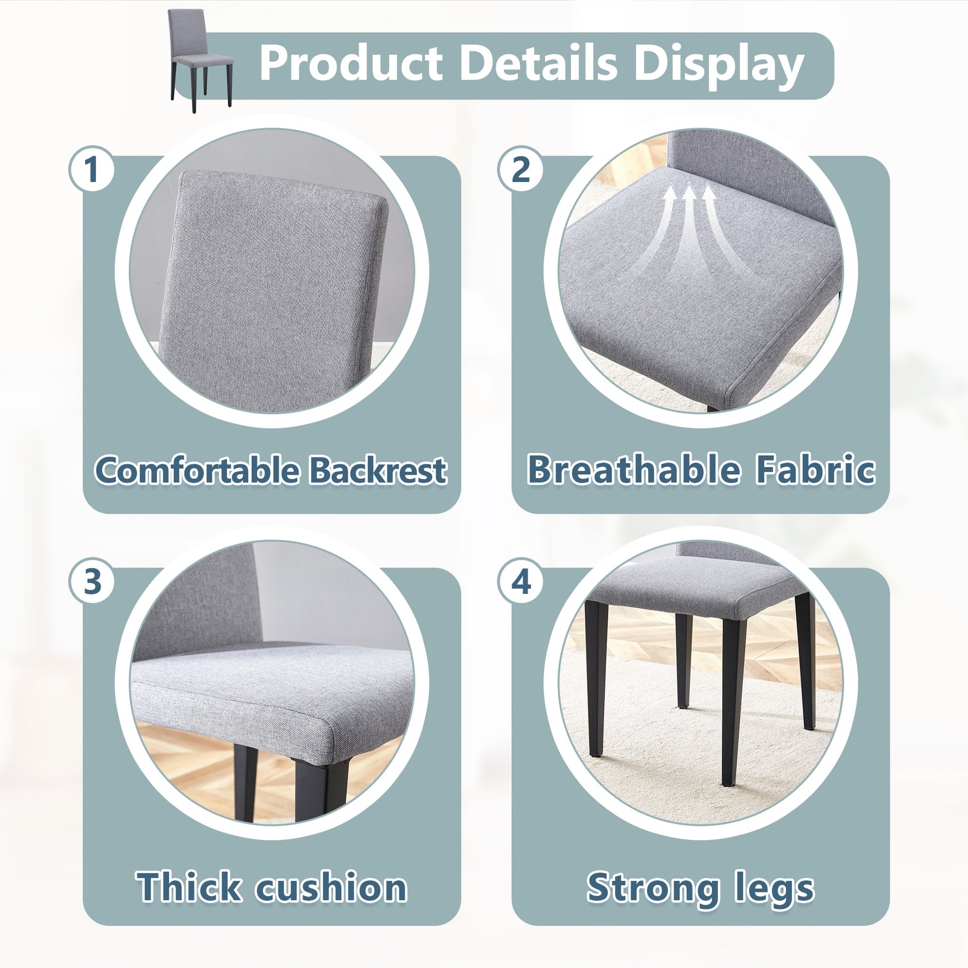 Exquisite Light Gray Linen-Cotton Dining Chairs Set of 4, Simple and Versatile Design With Comfortable Seating