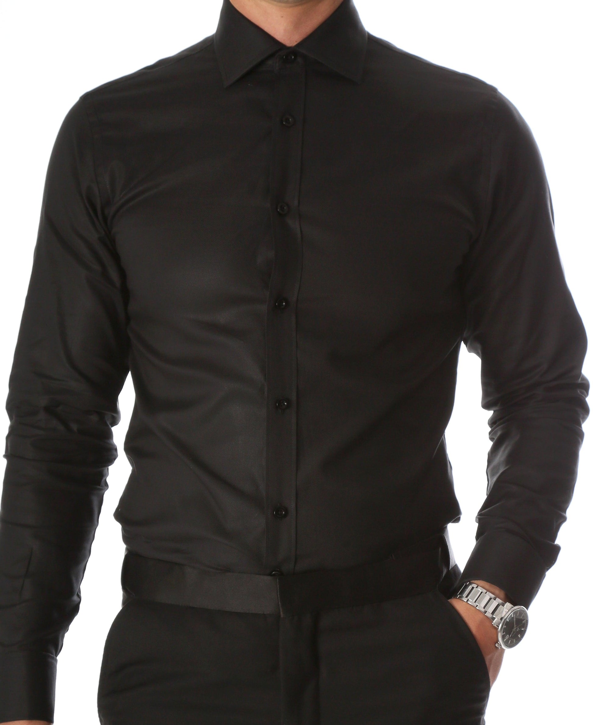 Ferrecci Men's Black Venice Slim Fit Pique Lay Down Collar Shirt