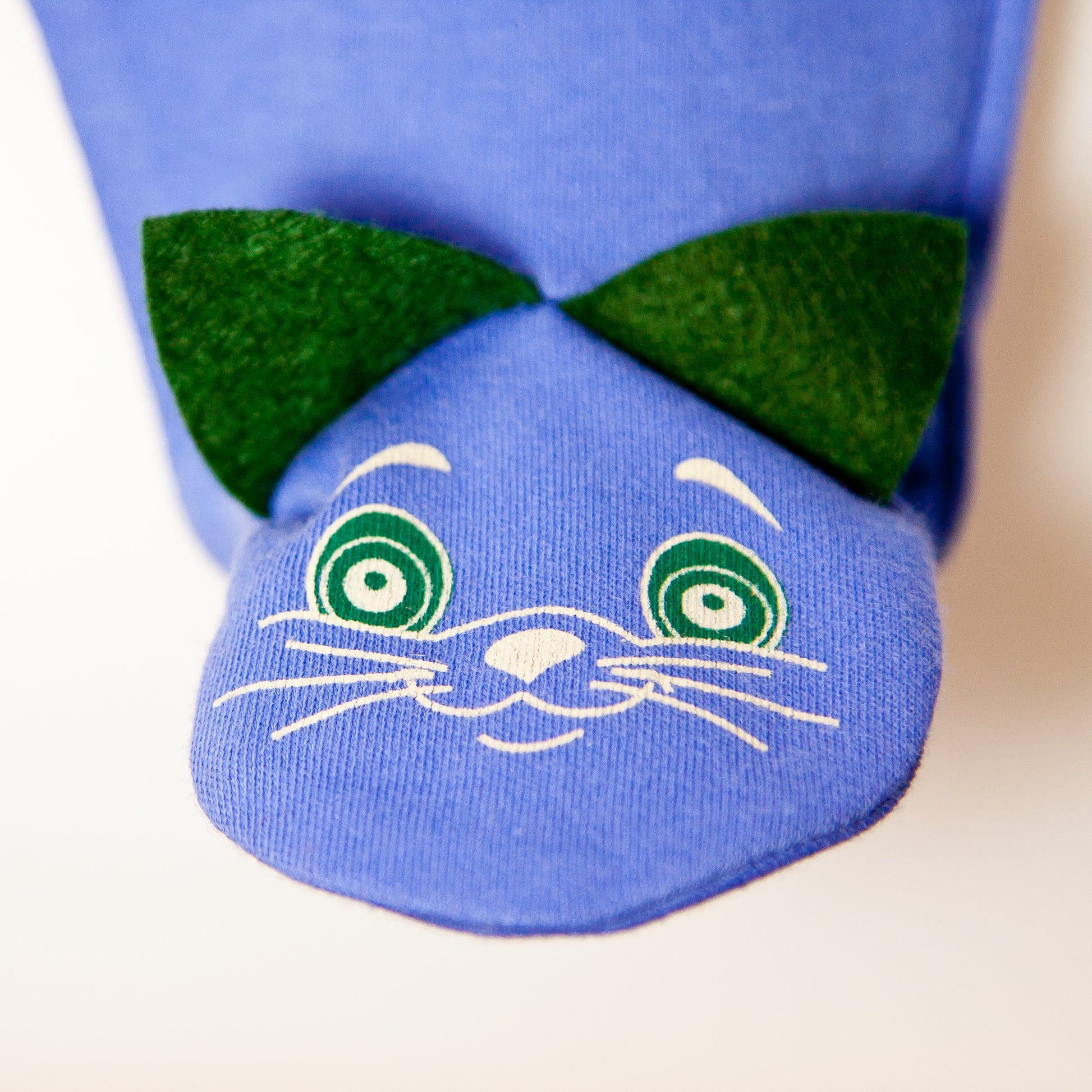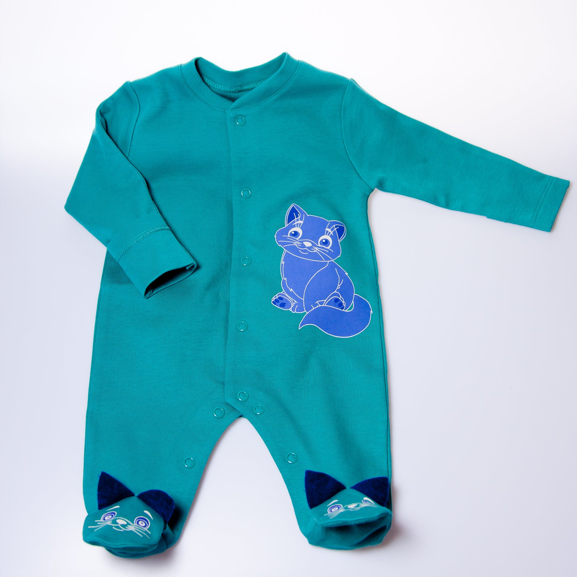 This charming kitten footie is made of the softest 100% cotton interlock material for the comfort of your baby. It is the perfect outfit for play dates and everyday. Front and bottom snaps for easy and quick dressing and undressing Feel super soft Kitten design on the front Kitten patterned feet 100% cotton Made in Turkey