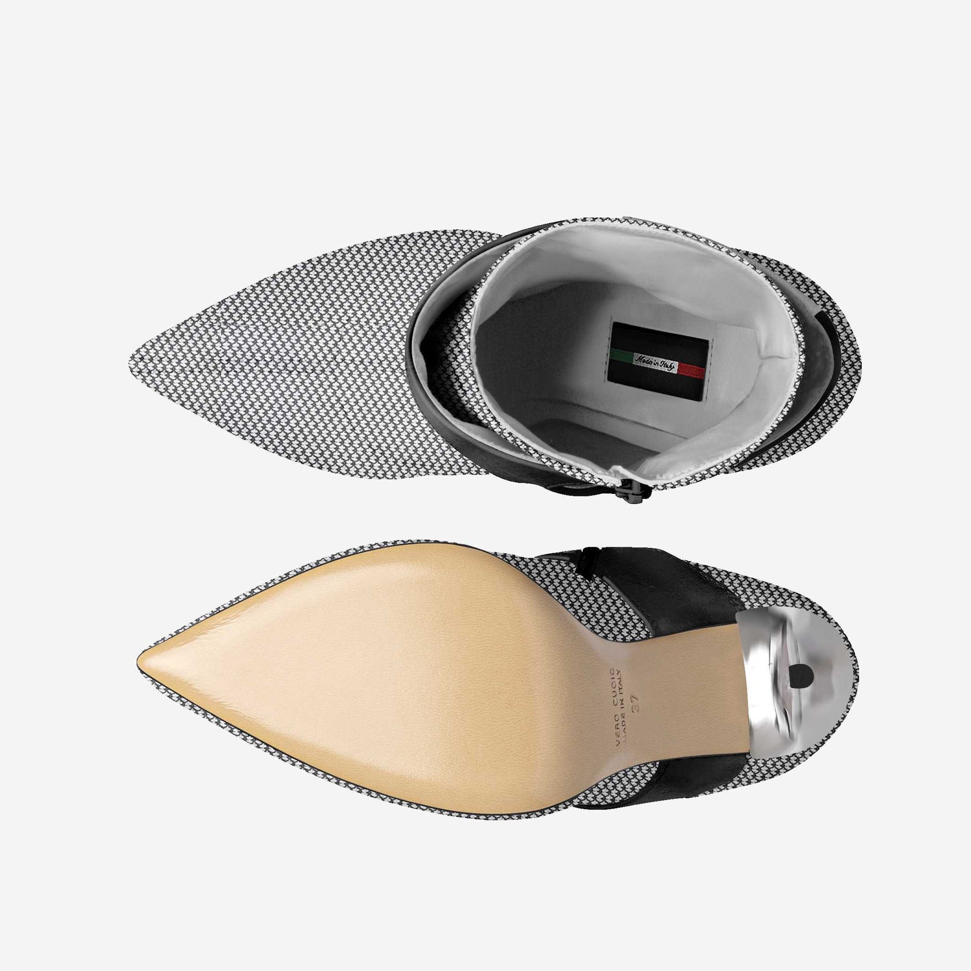 Step into the spotlight with these futuristically chic vegan stiletto boots. They represent the pinnacle of sustainable fashion, crafted with Italian artistry for a look that is both undeniably stylish and deeply responsible.