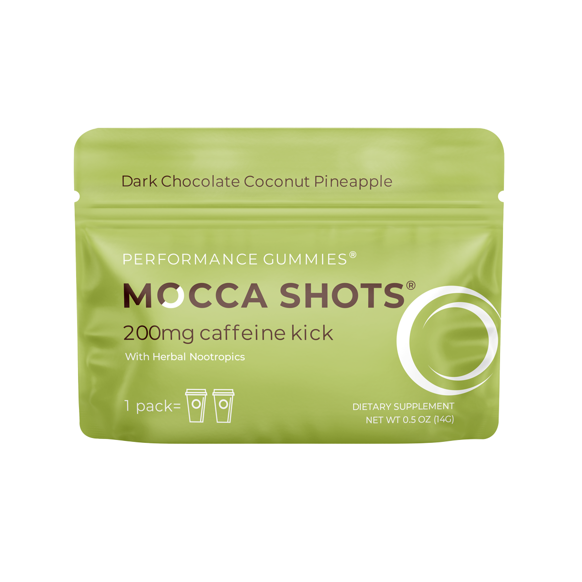 Mocca Shots High Energy Gummies work 3x faster than coffee at half the price. A unique combination of caffeine, vitamin Bs, and herbal nootropics helps boost energy, improve focus, and enhance cognitive performance without jittery side effects, so you can GET____DONE, anytime, anywhere.
