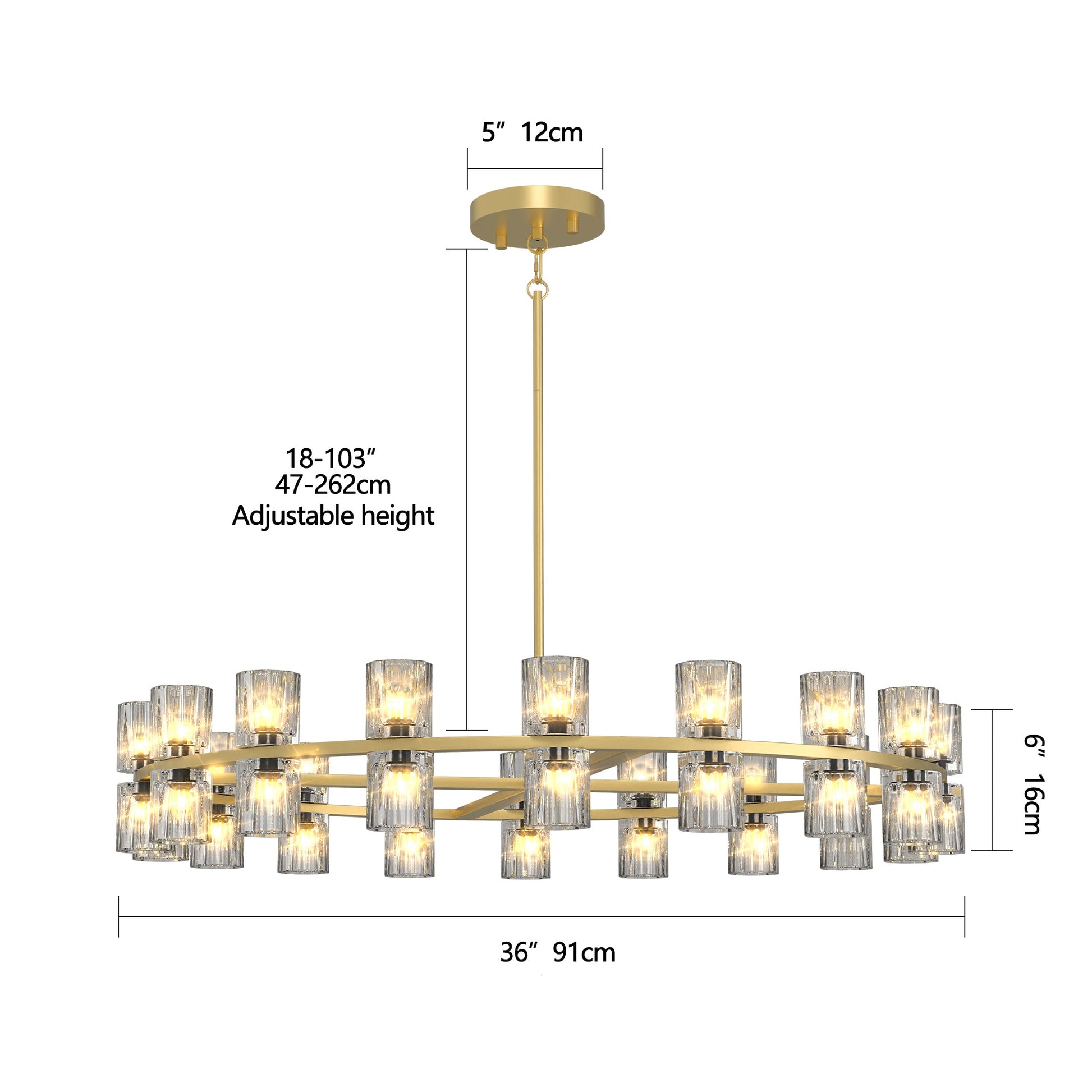 Modern 36' Gold Round Chandelier Light Fixture, K9 Crystal Chandeliers for Dining Room, Living Room, Dining Room Chandel