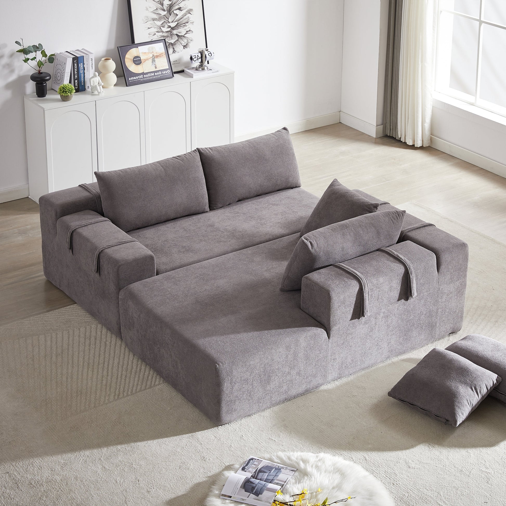 - [Modern Sectional Sofa Couch]This Chenille upholstery sectional sofa features a simple style, focusing more on clean lines to bring a timeless and chic to your home, This Upholstered sofa sectional features square arms and includes six pillows[dimensions:17.7*29.5(3pcs),17.7*17.7(2pcs),13.7*27.5(1pcs)] make sure your living room the center of attention
