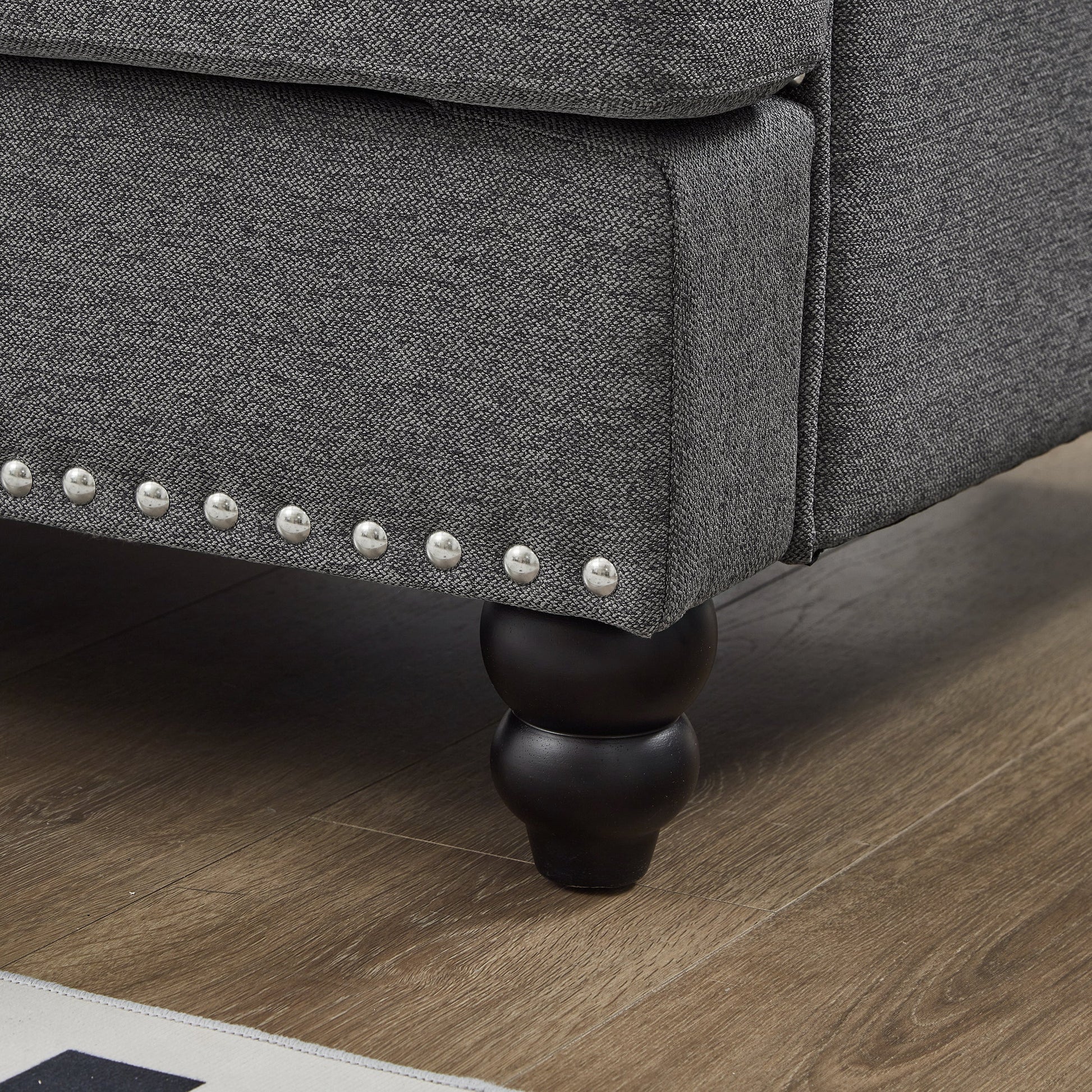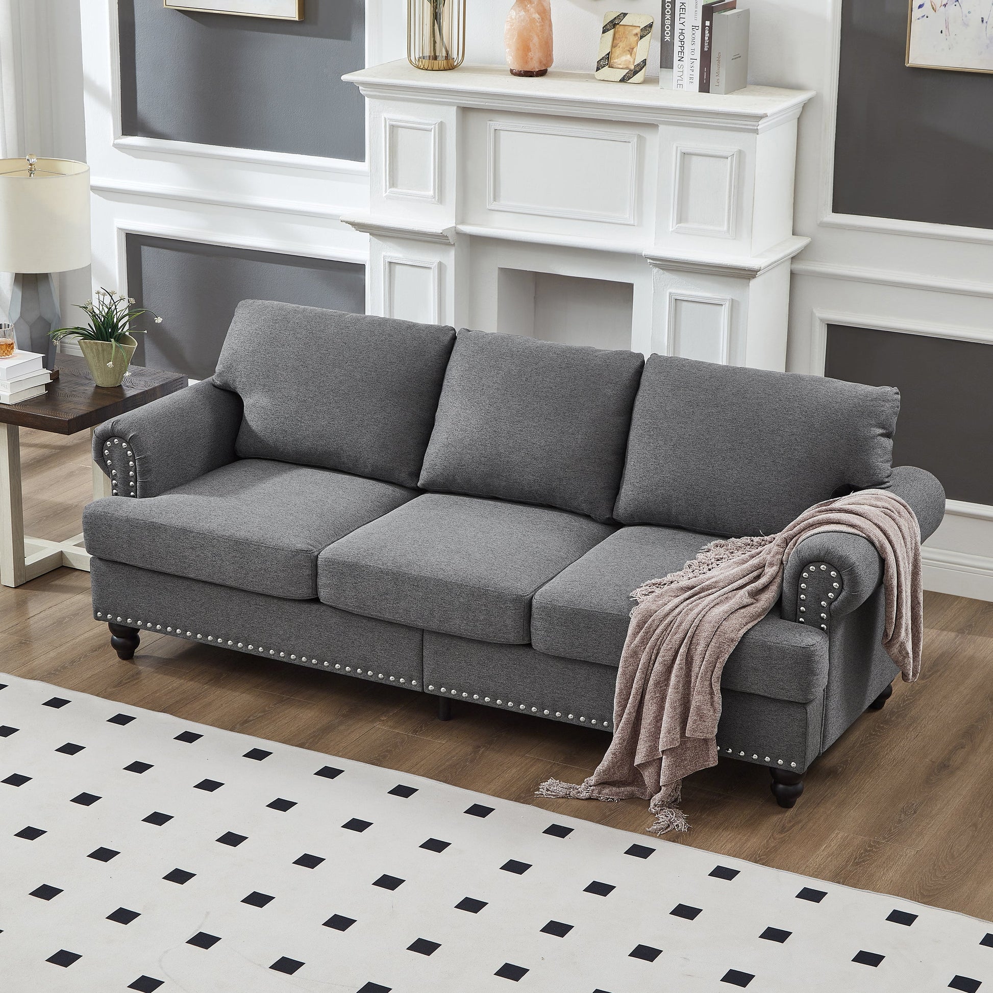 Modern Classic Design With Nails Living Room 2+3 Seater Sofa Fabric Couch,Upholstered Polyester Grey.