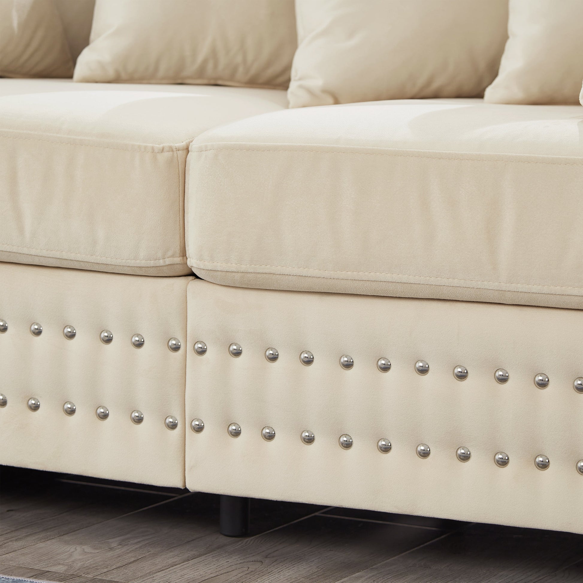Modern Design Living Room Sofa Square Armrest With Silver Nails Decoration Upholstered Velvet Loveseat Apricot