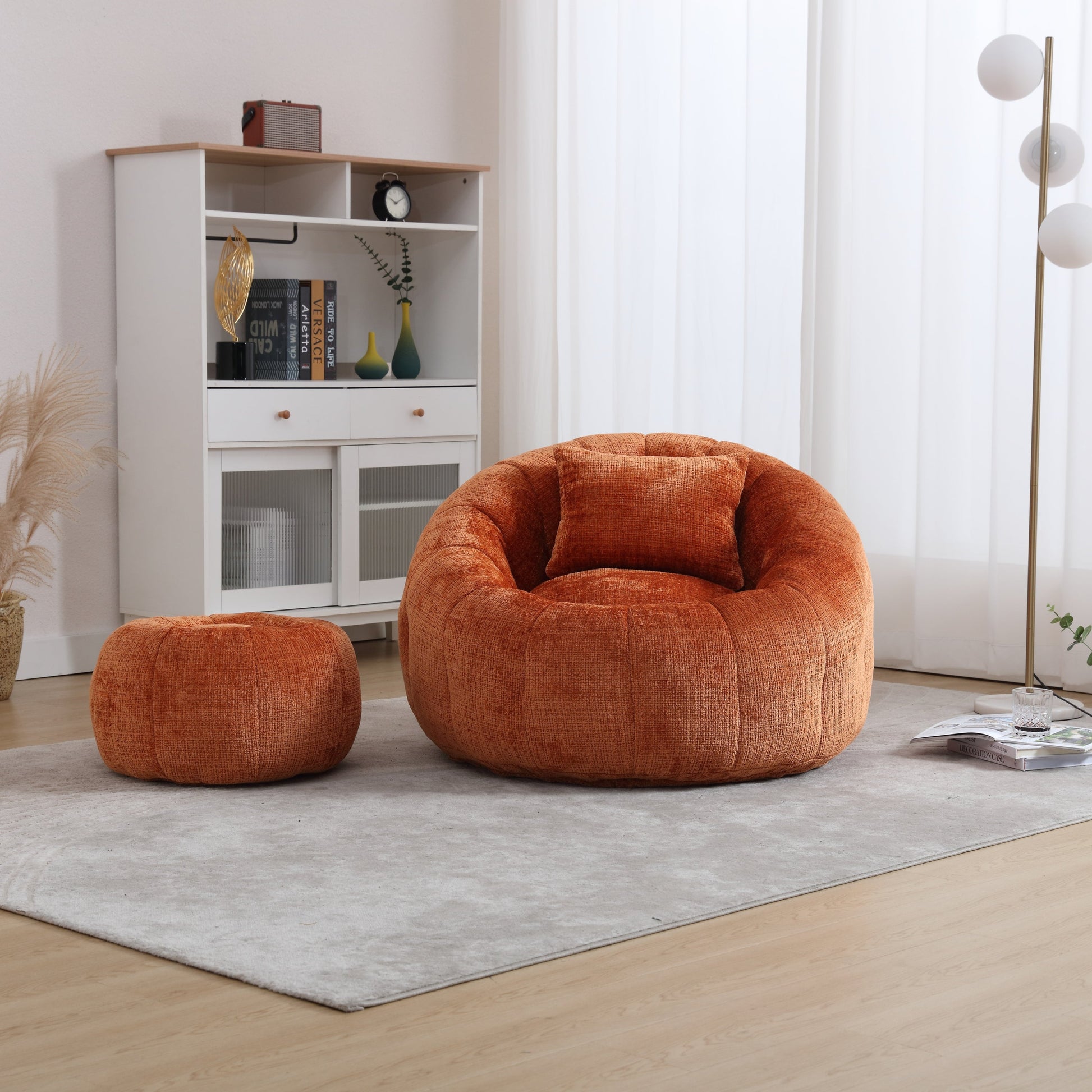 Modern Extra Large Round Bean Bag Chair With Footrest for Living Room, Chenille Fabric Lazy Sofa With Pillow for Adults,