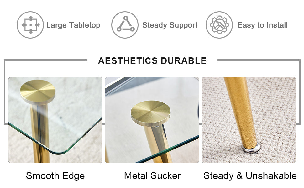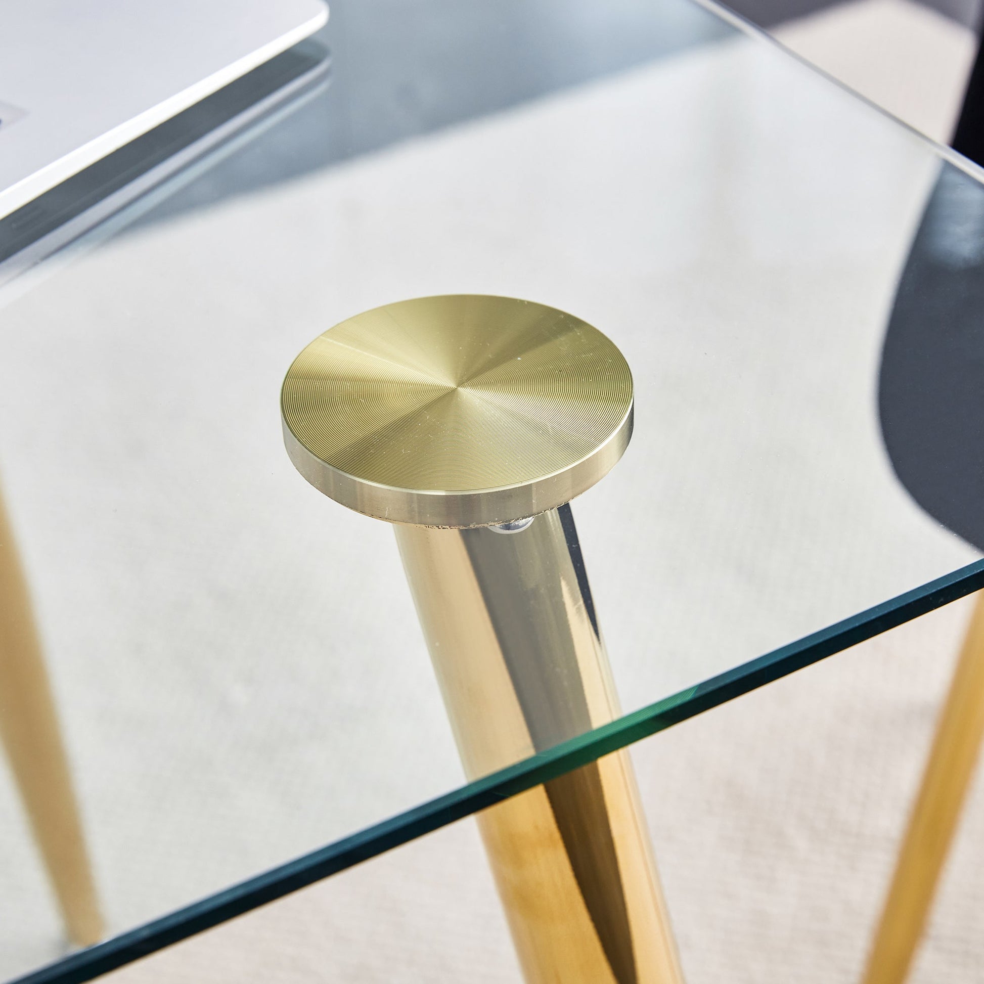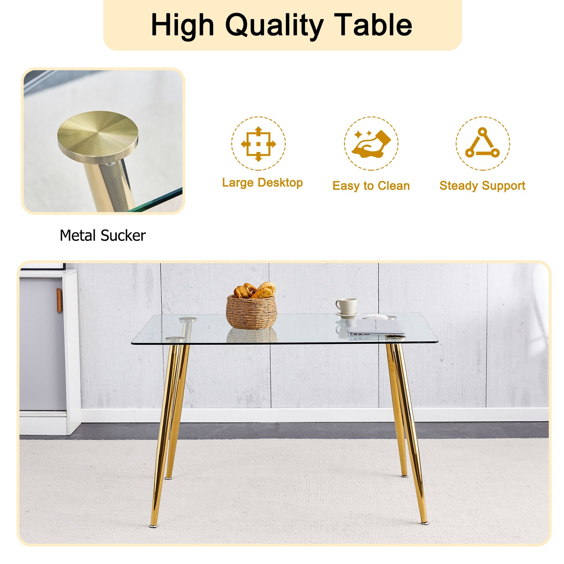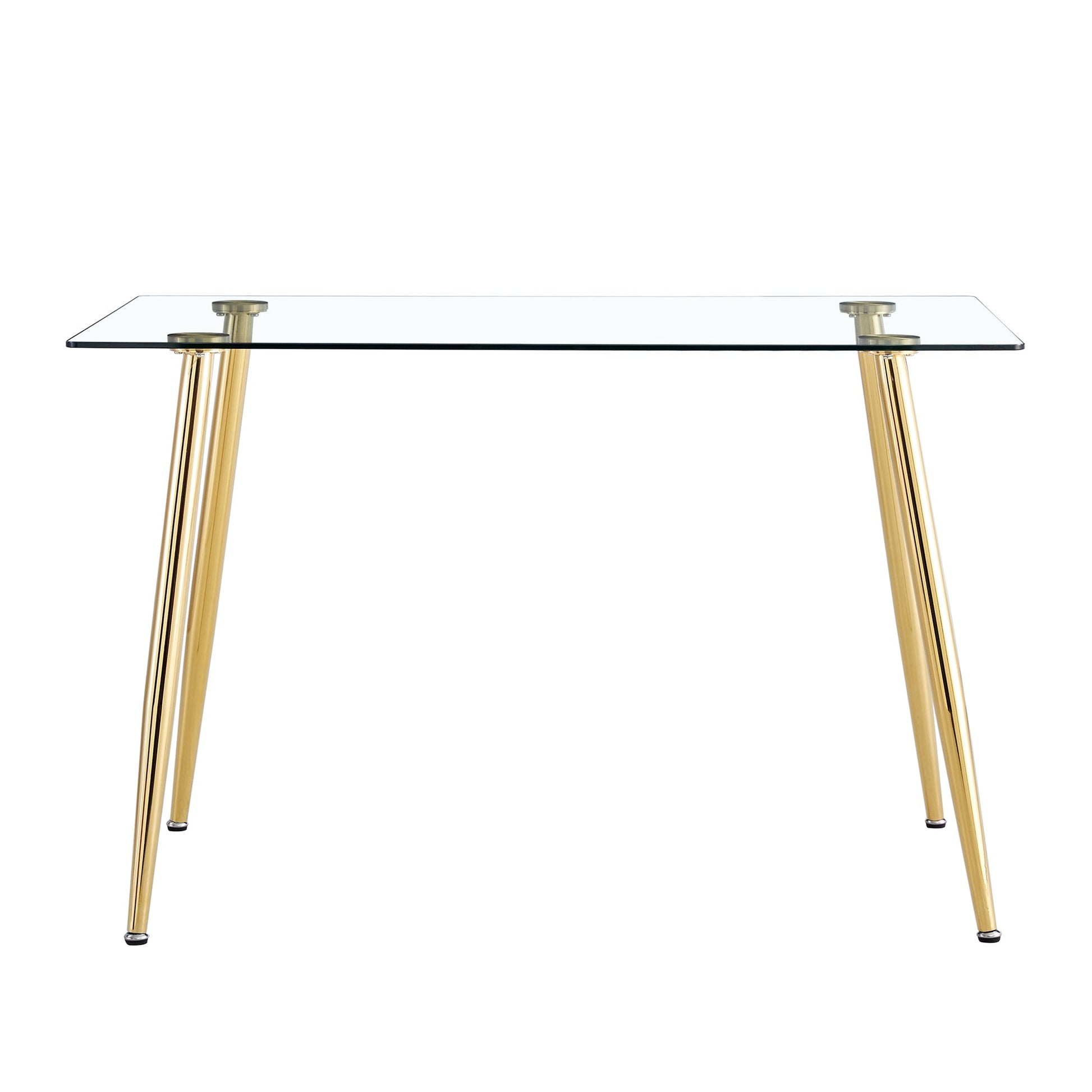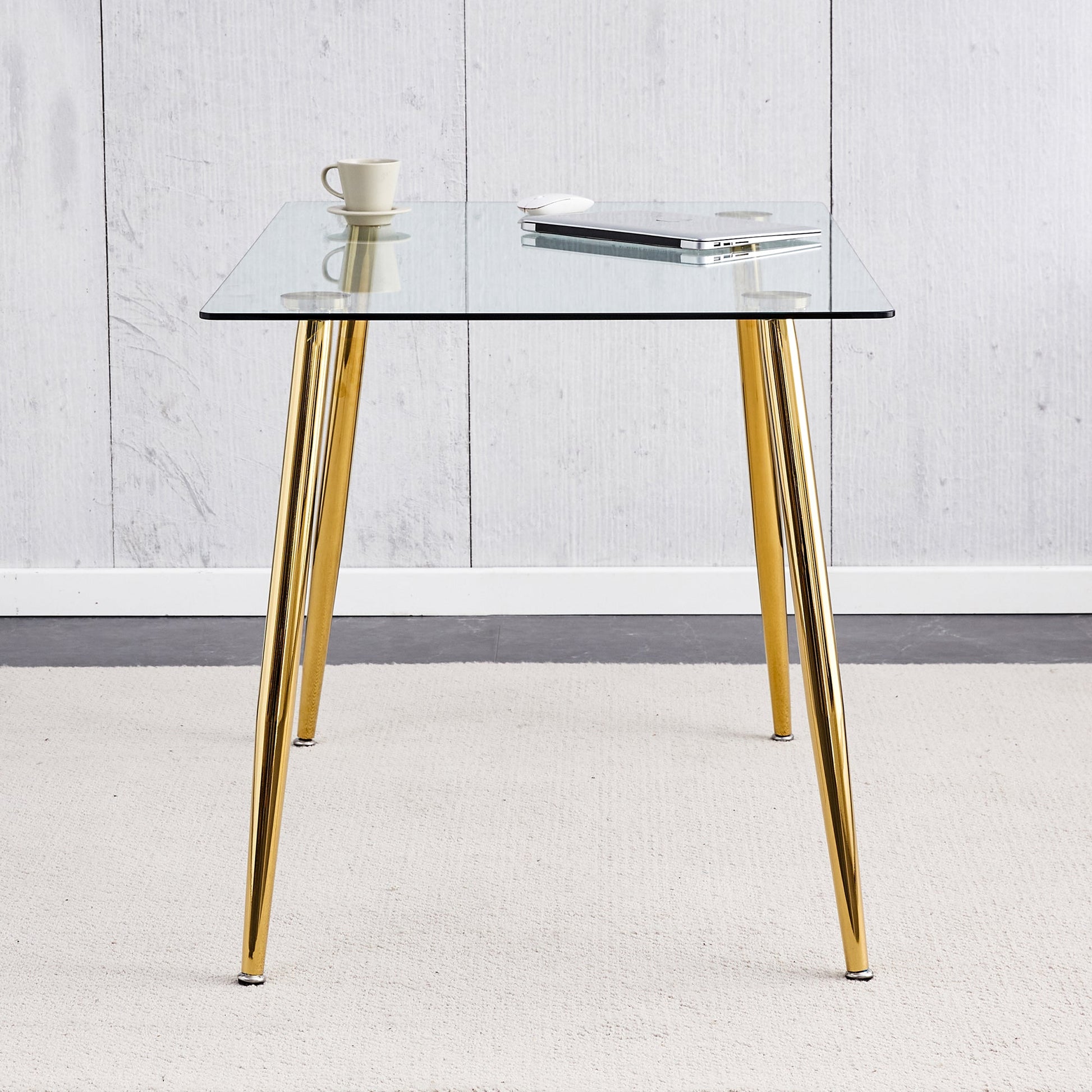 - Modern Minimalist Rectangular Glass Dining Table for 4-6 with 0.31' Tempered Glass Tabletop and Golden plating Metal Legs, Writing Table Desk, for Kitchen Dining Living Room