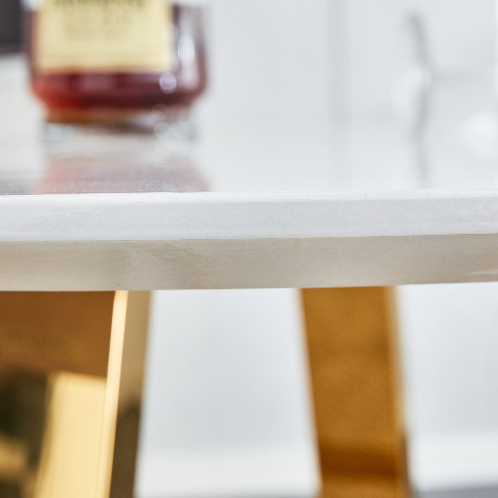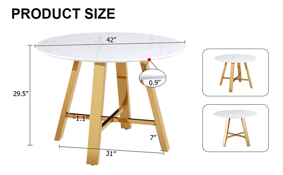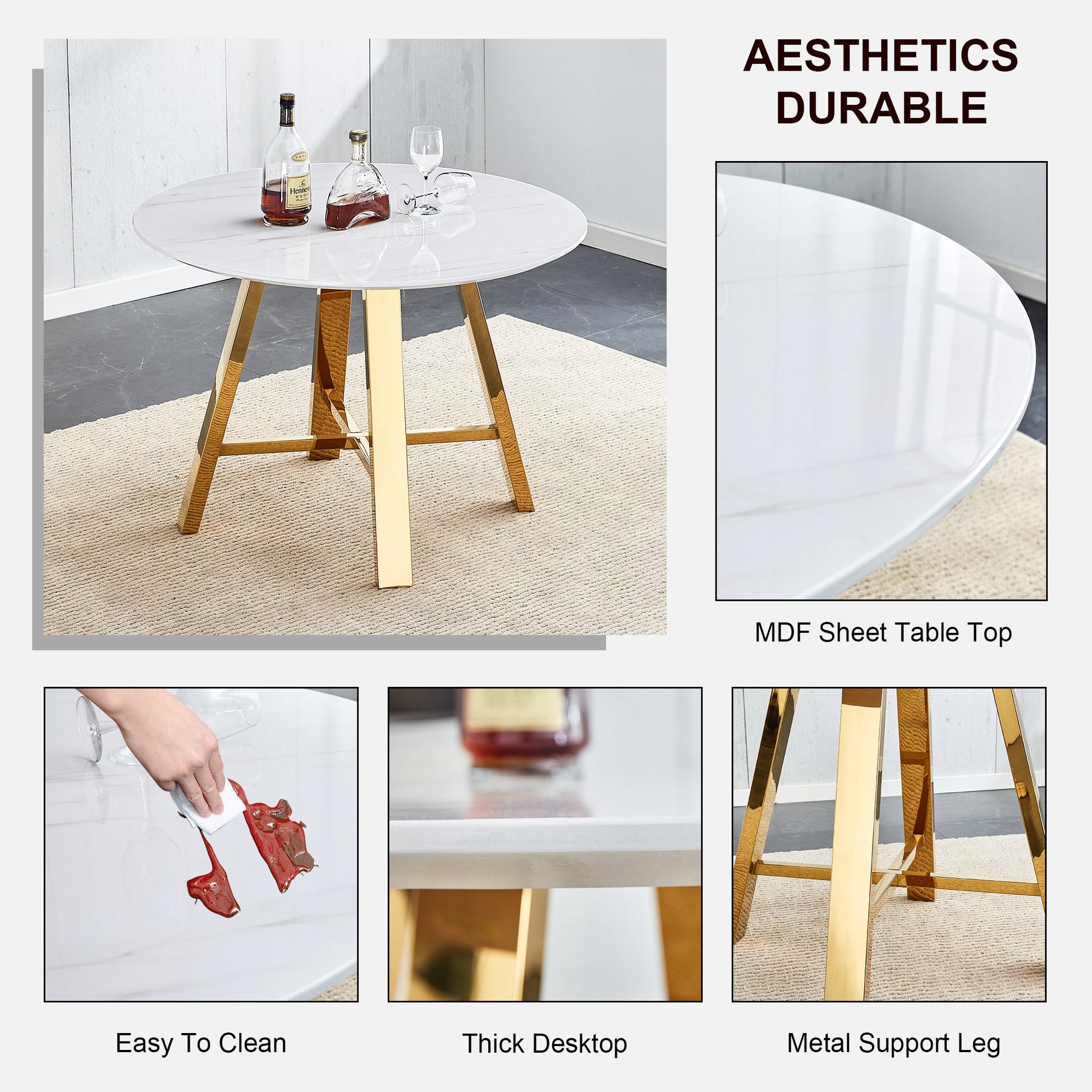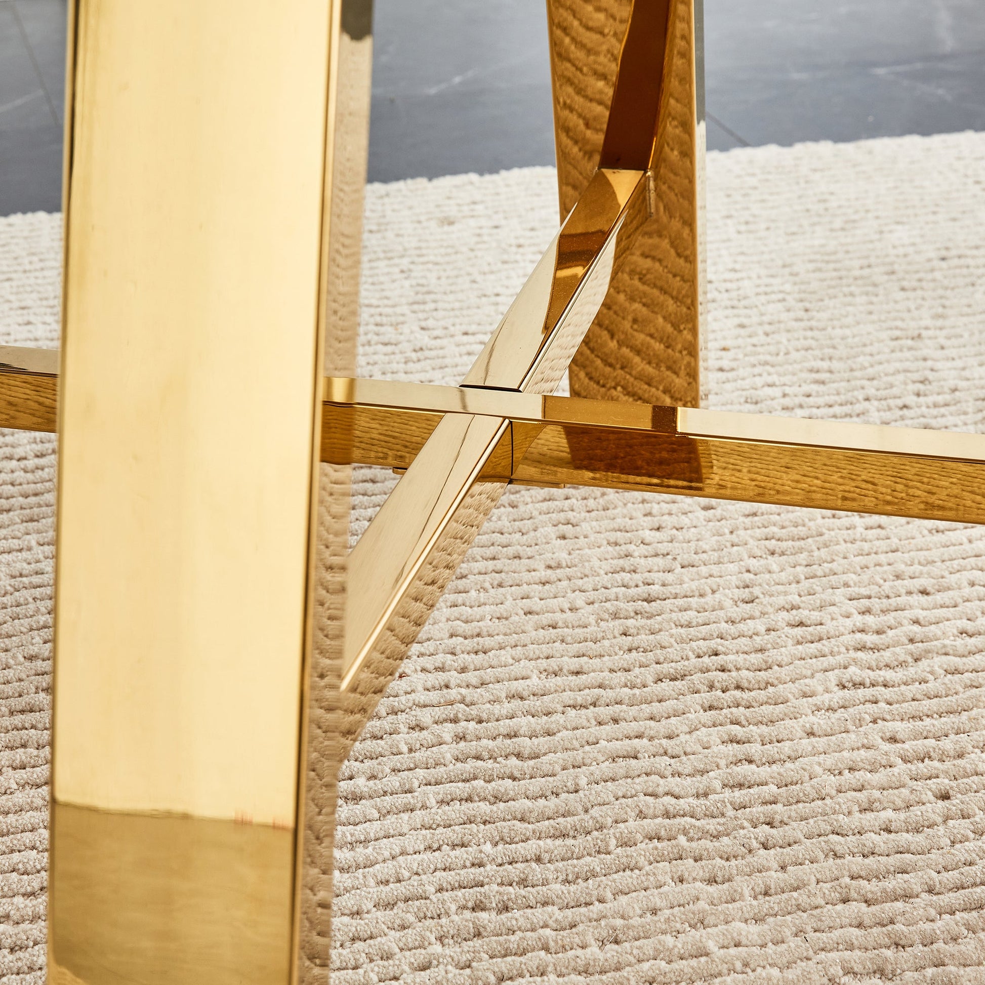 - Golden Metal Support Legs: The table is equipped with gold metal legs, reinforced with a cross structure, and has an overall height of 29.5 inches, making it sturdy and durable.