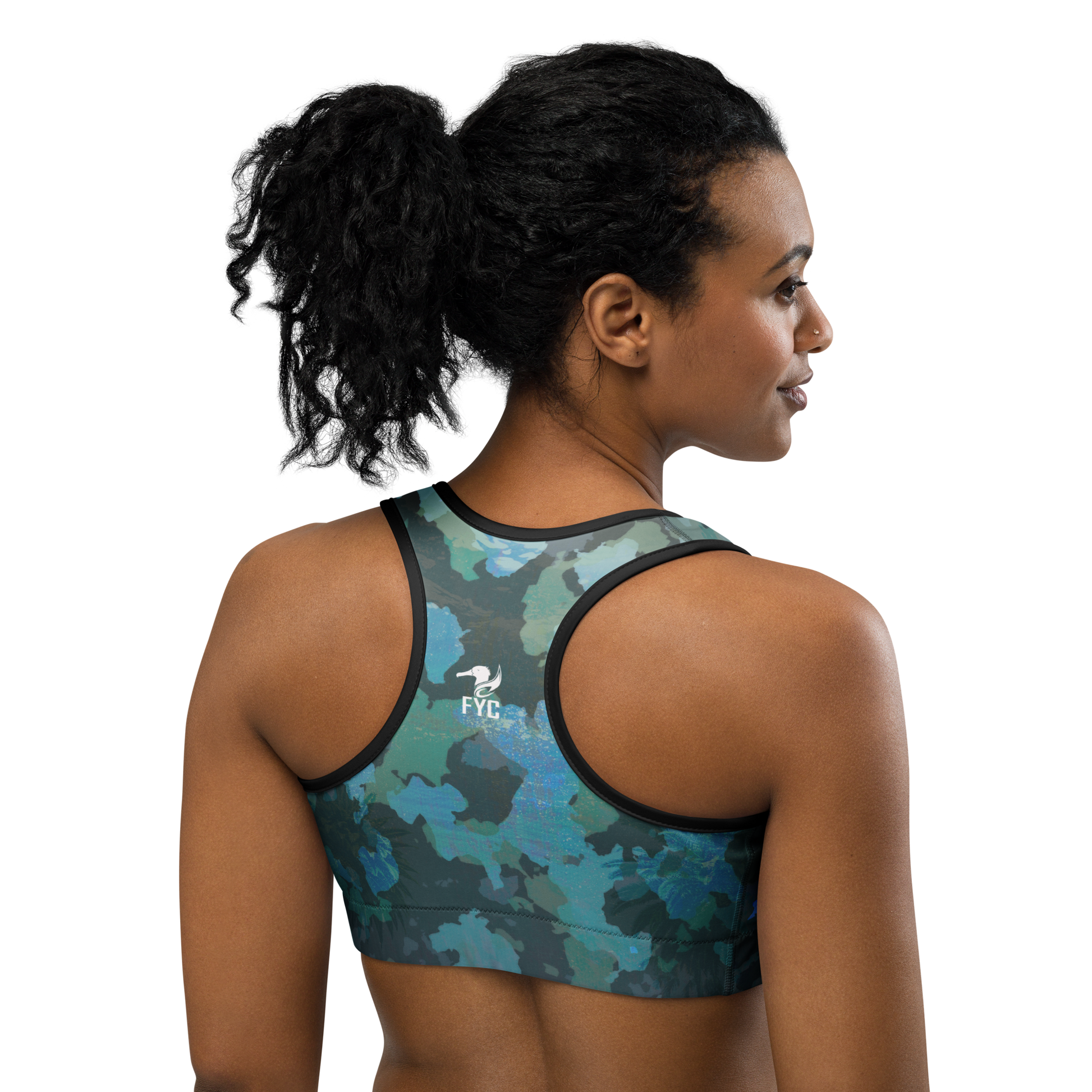 Moisture Wicking Ocean Camo Sports Bra (White & Black Piping)
