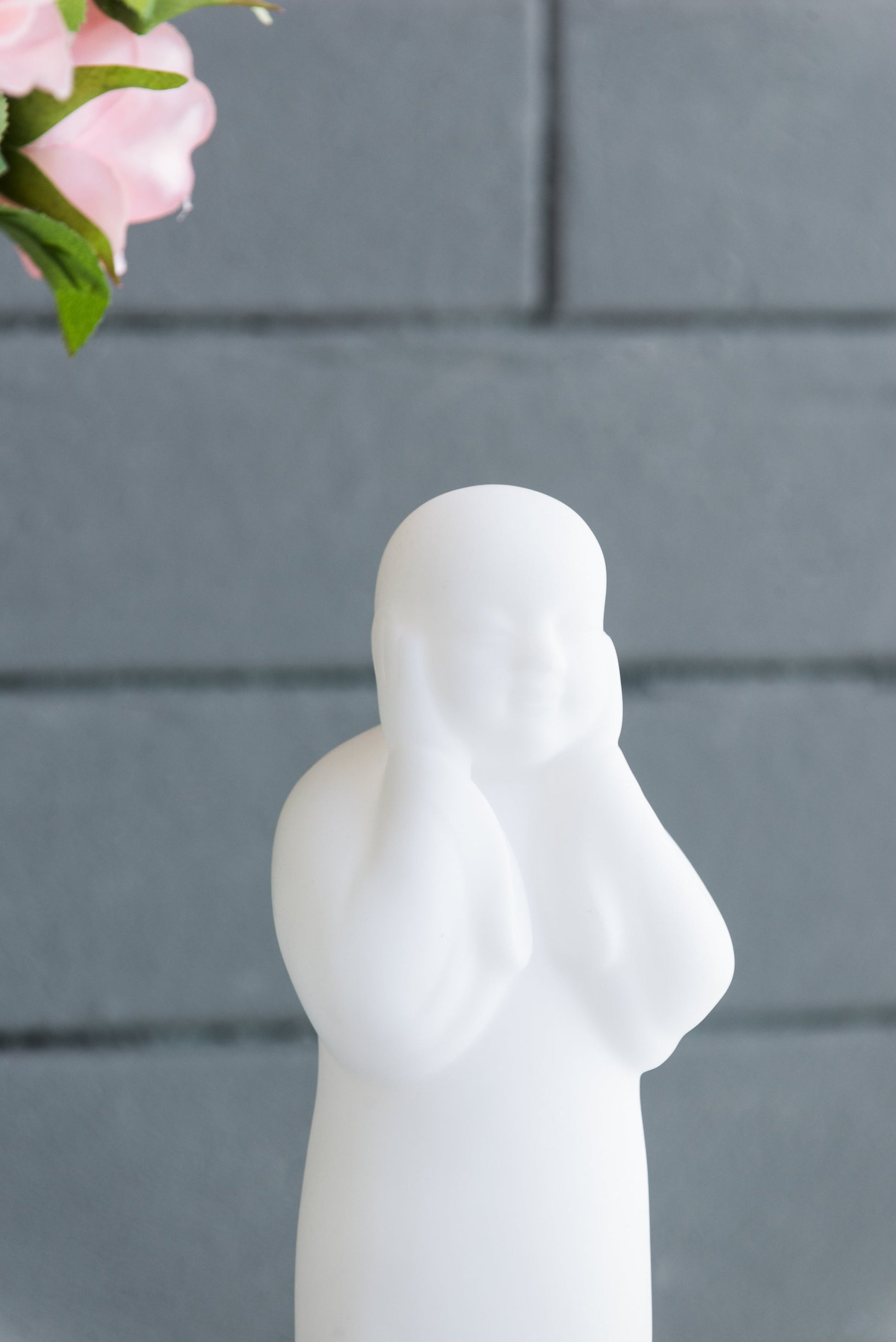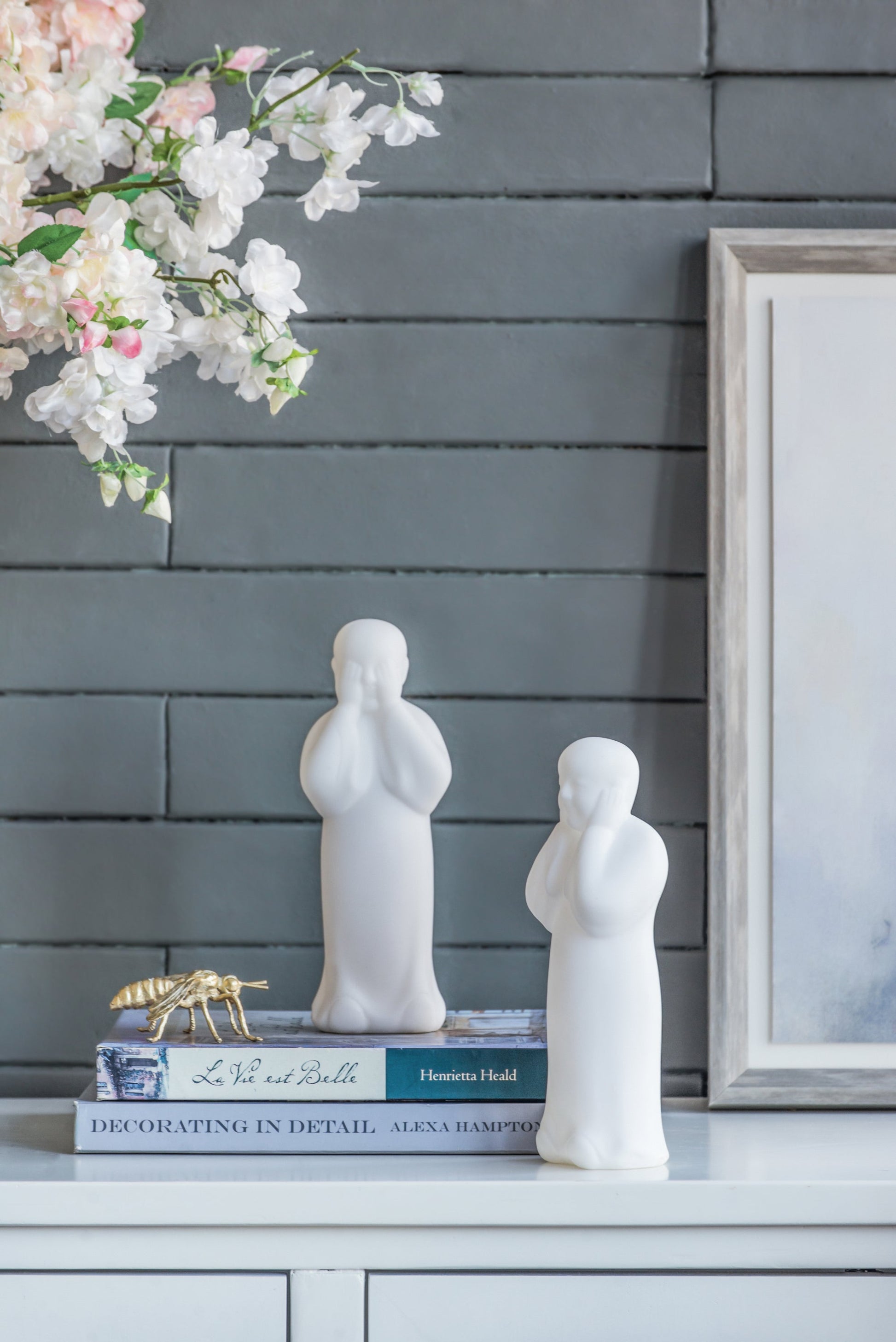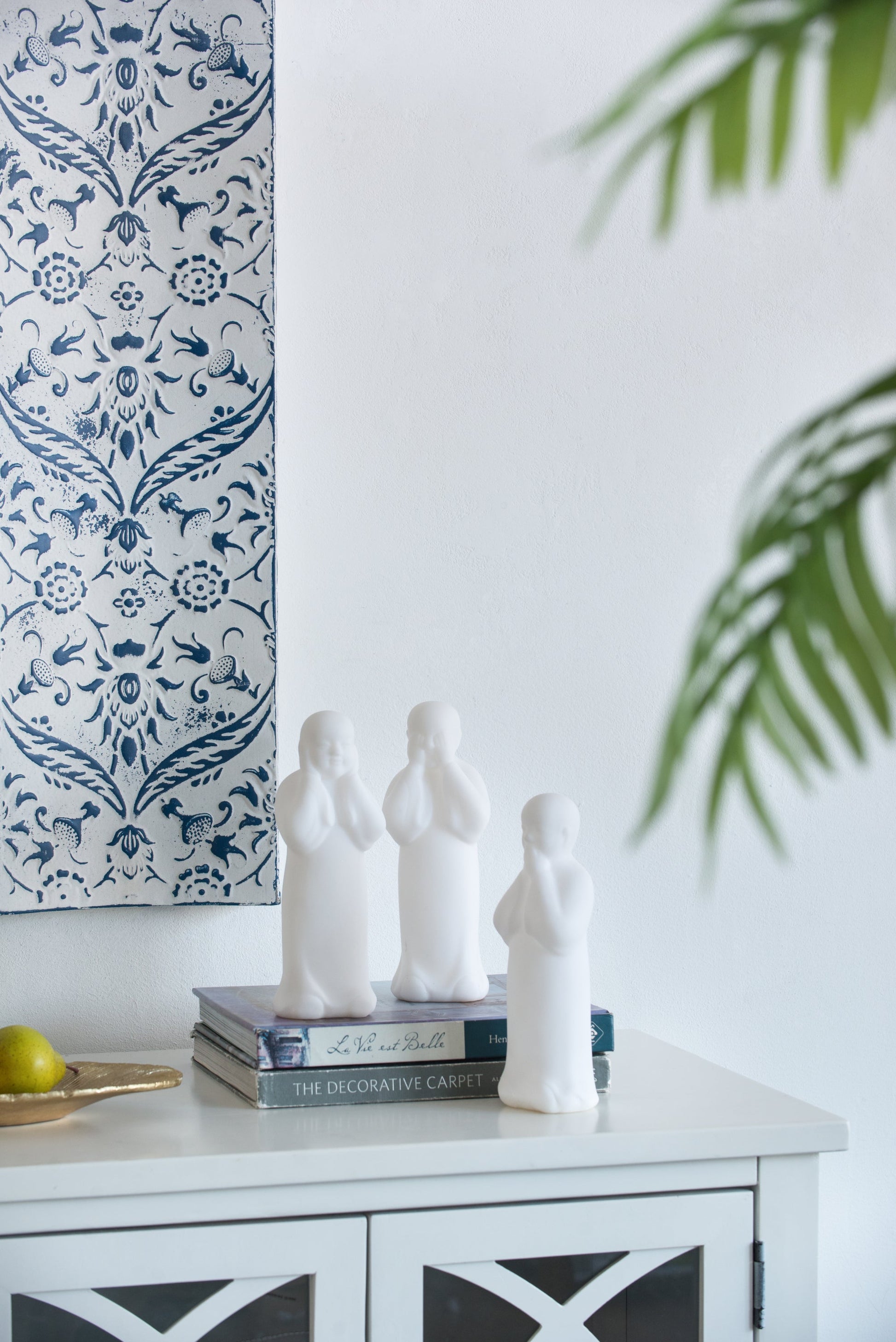Offering a stylish, meditative twist on the classic See No Evil, Hear No Evil, Speak No Evil proverb, this set of monk figurines features soft, simple details and an alluring white finish. Whether displayed together or separately, they bring a calming presence to any tabletop, mantel, sideboard, or shelf.