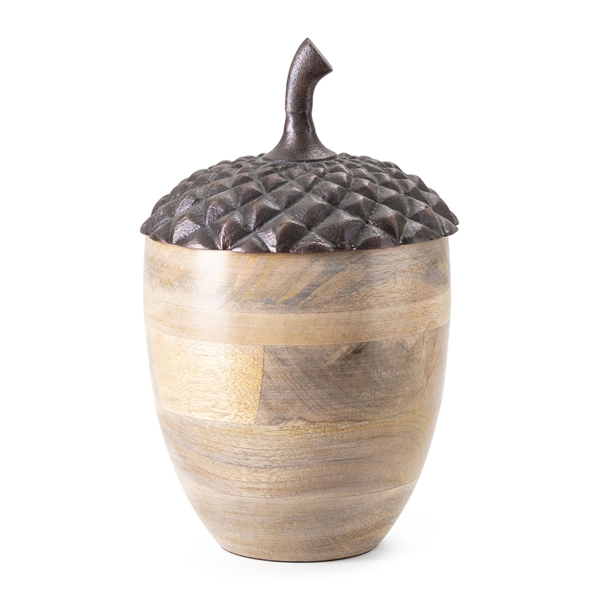 - From tiny acorns grow mighty oaks: A pair of wood acorns topped with textural aluminium caps in a copper finish reminds us that nature has her own timetable.