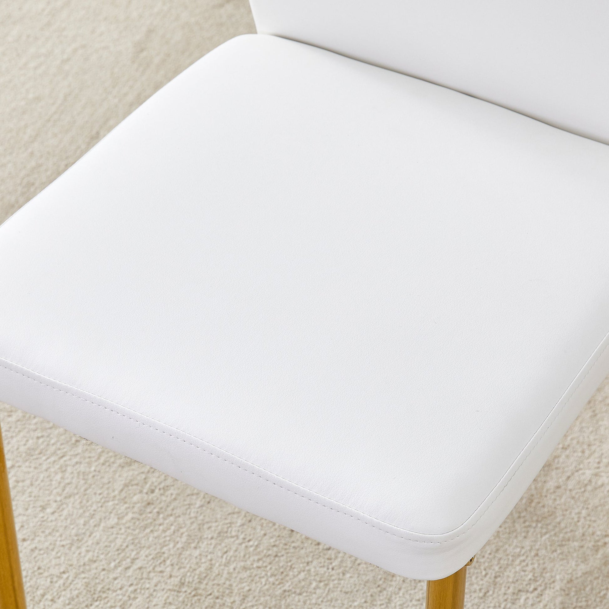 - Material application: The backrest and seat cushion are made of white PU synthetic leather material, which has good wear resistance and faux leather texture, giving the chair a delicate appearance and easy daily cleaning and maintenance; Internally filled with high-density sponge to ensure a comfortable sitting experience and excellent resilience, effectively relieving the pressure of prolonged sitting.