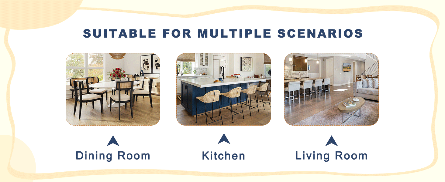 - These chairs, with their modern design, comfortable seating experience, and versatility, are perfect for families or commercial places that pursue fashion and quality living. This classic color combination is suitable for various interior decoration styles and easy to blend into different environments.