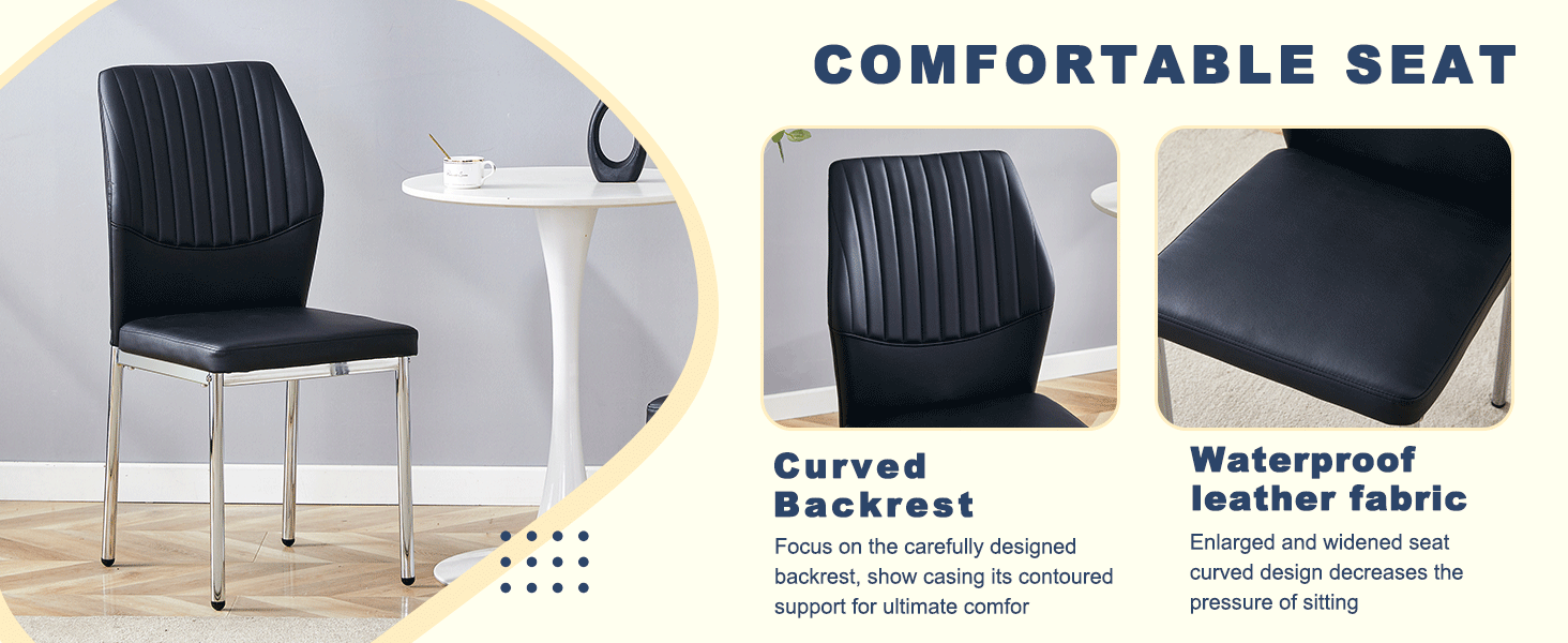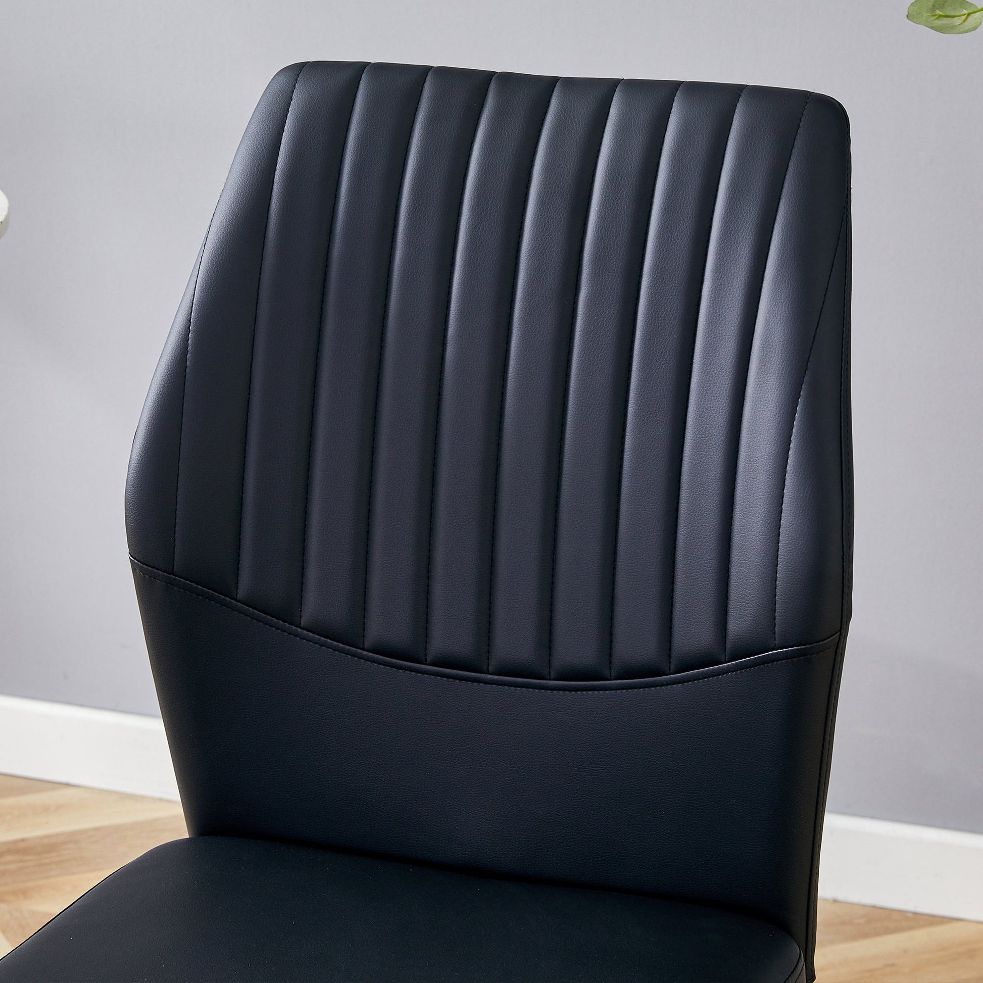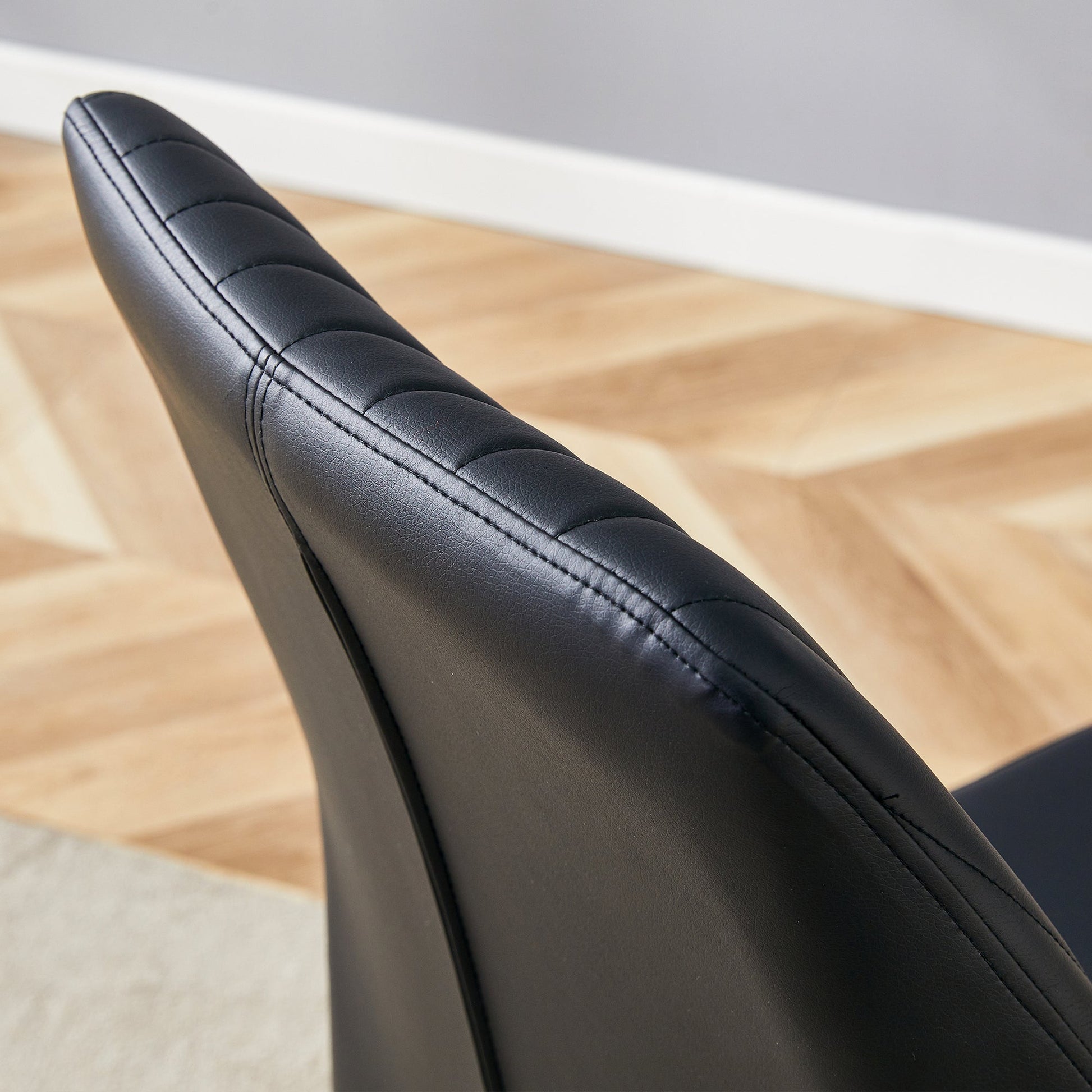 - Material application: The backrest and seat cushion are made of black PU synthetic leather material, which has good wear resistance and faux leather texture, giving the chair a delicate appearance and easy daily cleaning and maintenance; Internally filled with high-density sponge to ensure a comfortable sitting experience and excellent resilience, effectively relieving the pressure of prolonged sitting.