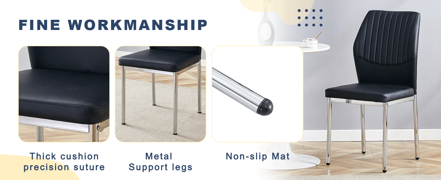- Silver Metal Legs: Four silver metal table legs not only offer stable support but also add a modern touch to the dining table with their unique design.Stable Structure: The design of silver metal legs and anti-slip feet ensures the stability and safety of the dining table during use.