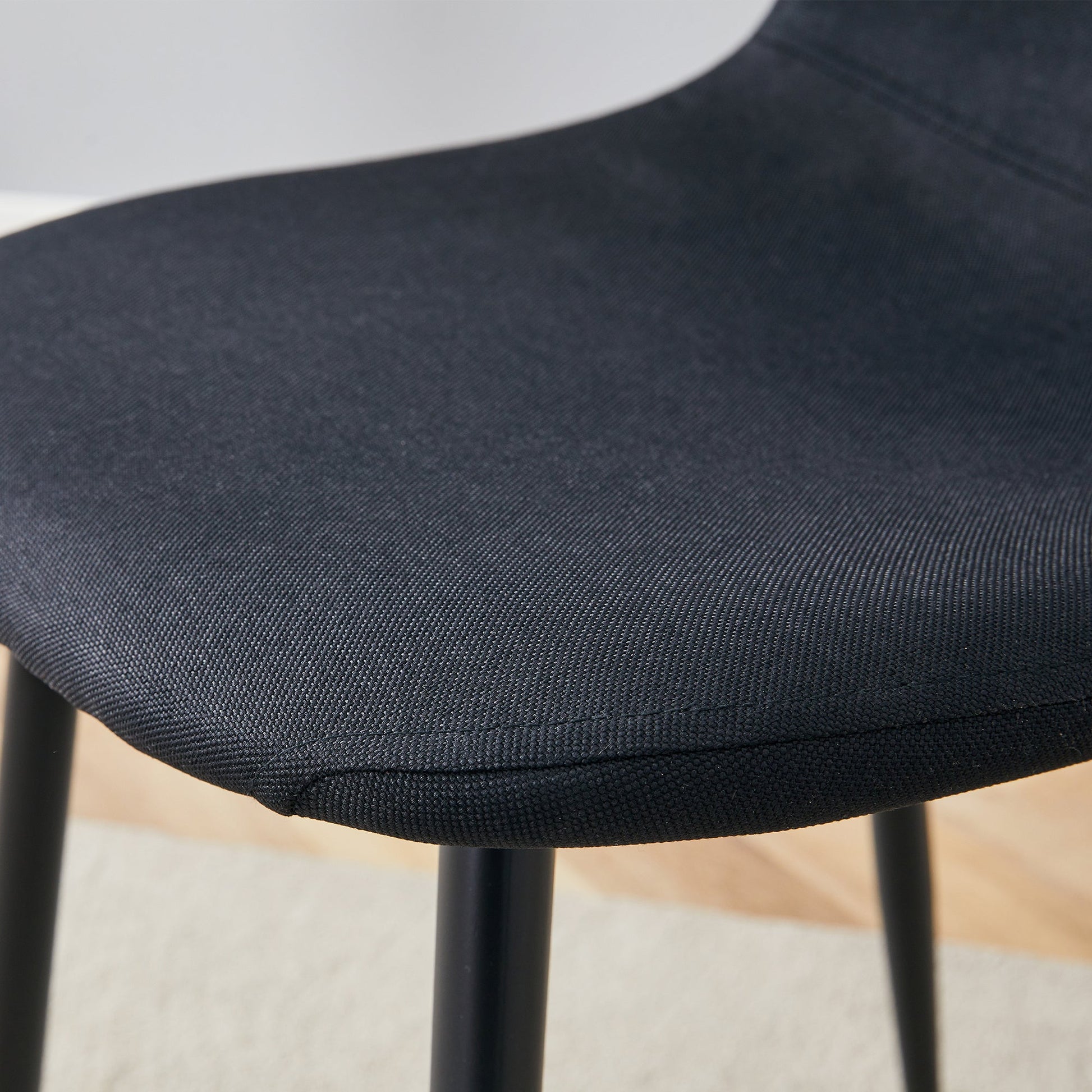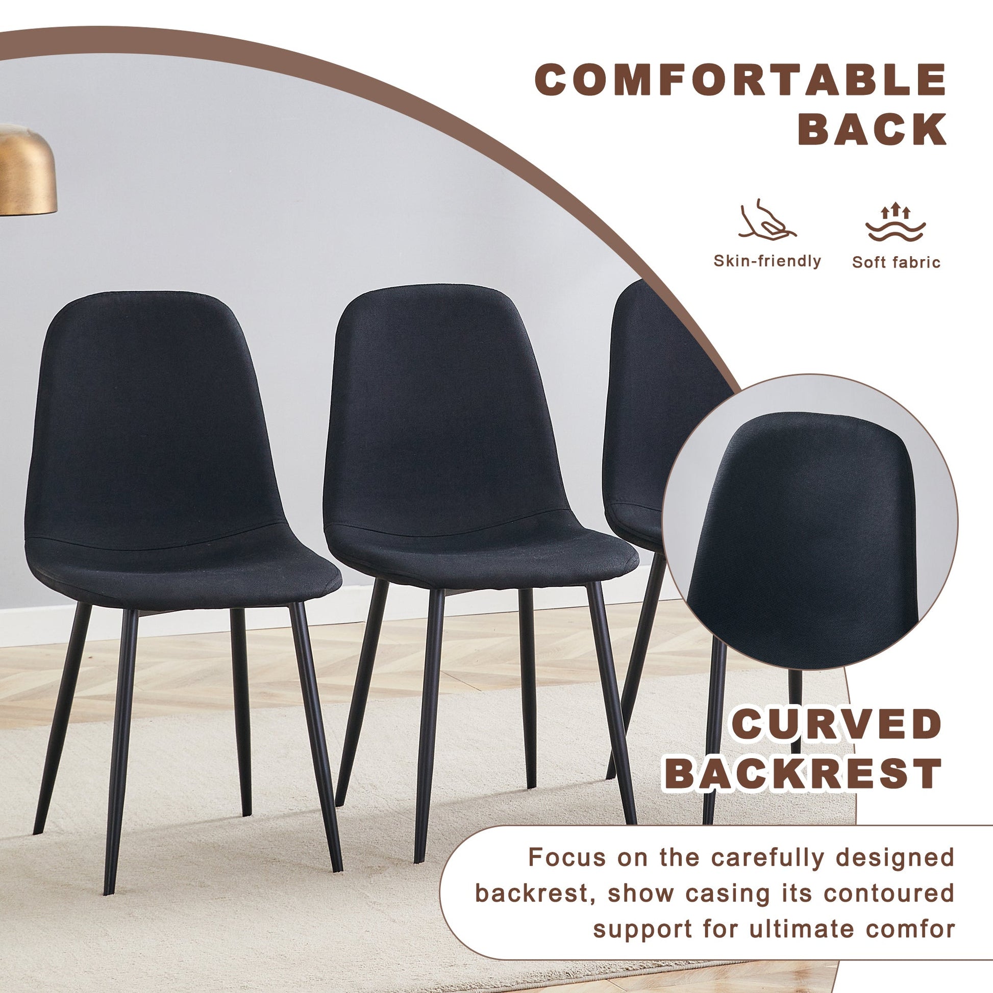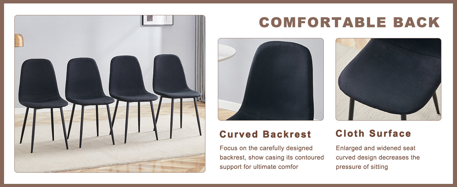 - Linen-Cotton Material: The chairs are made of black linen-cotton, naturally breathable, offering excellent comfort.Easy to Clean: The linen-cotton material is easy to clean and maintain, keeping the chairs fresh and new.