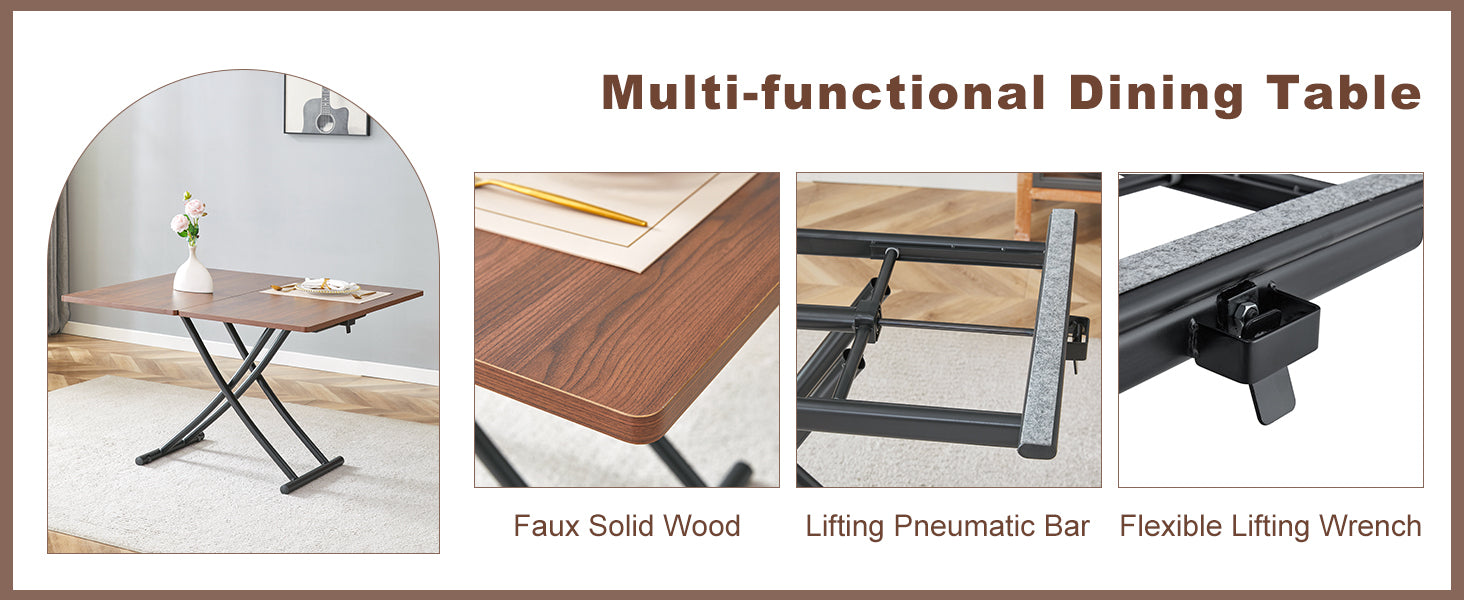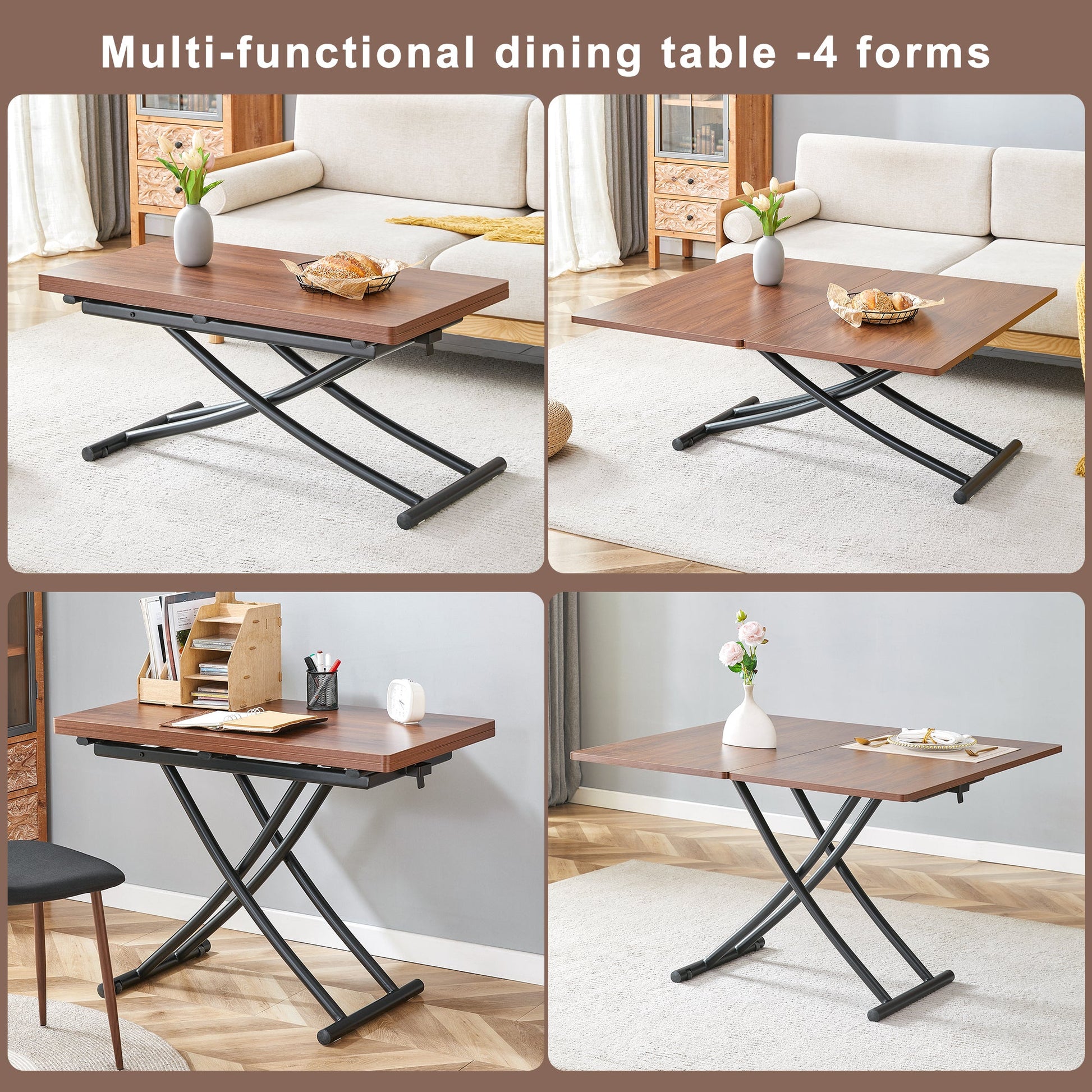 - Walnut textured desktop, simulating natural wood grain texture, bringing a warm atmosphere to your home.Versatility: The dining table can be used as a coffee table, dining table, study table, bar table, etc., with multiple forms adjustable to your preference.