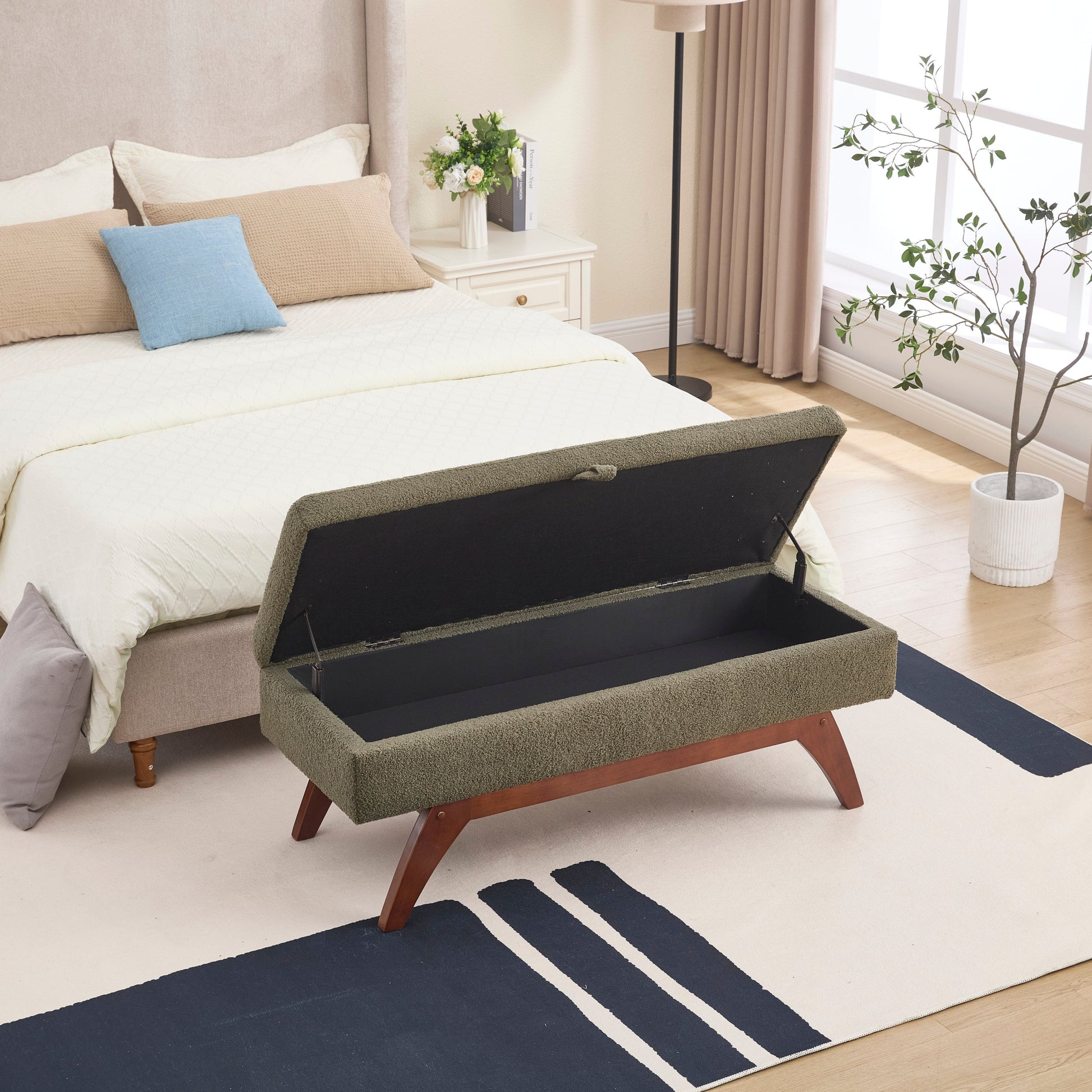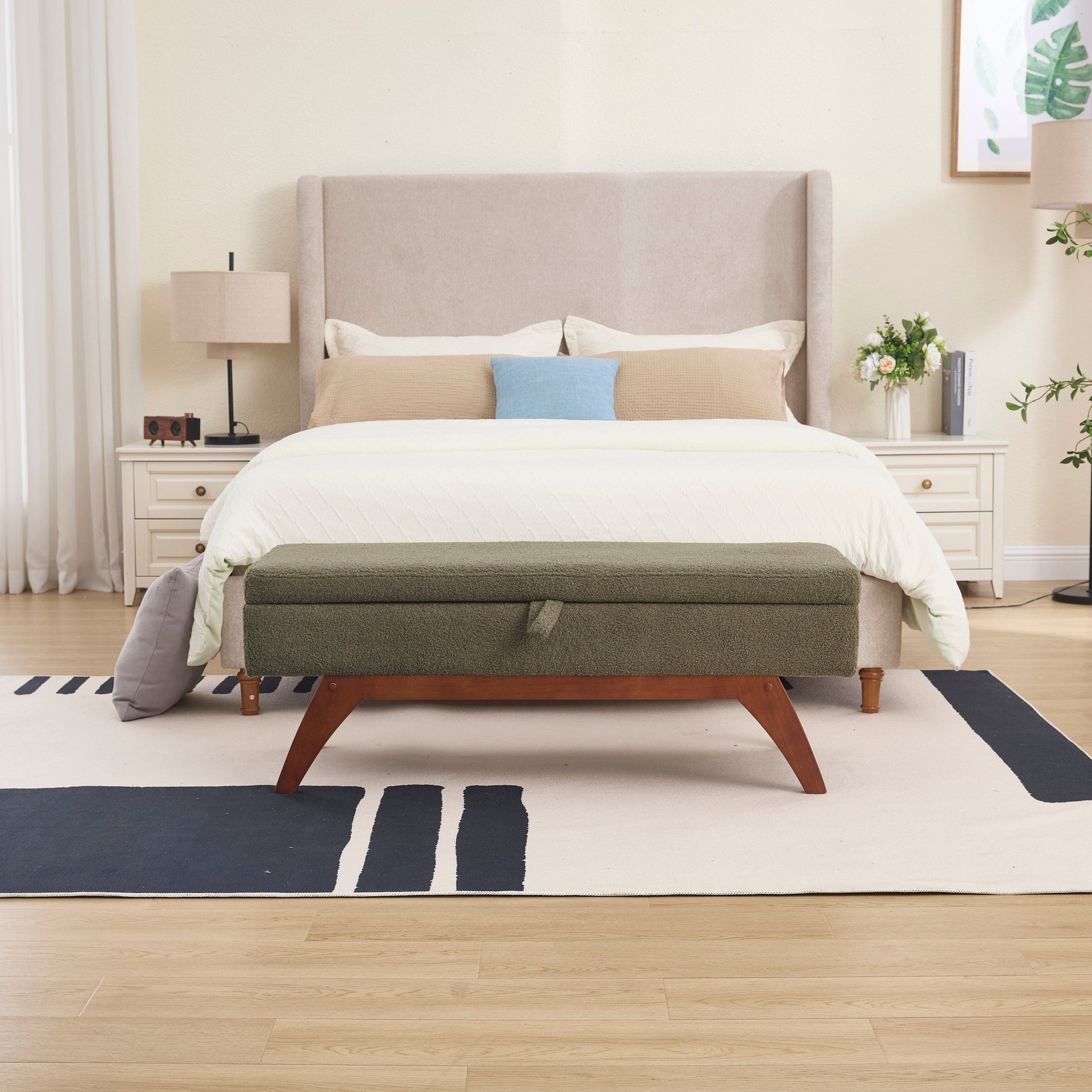 Teddy Wool Fabric, Solid Wood Feet for Solid Weighing, and Bed End Stool With Storage Function