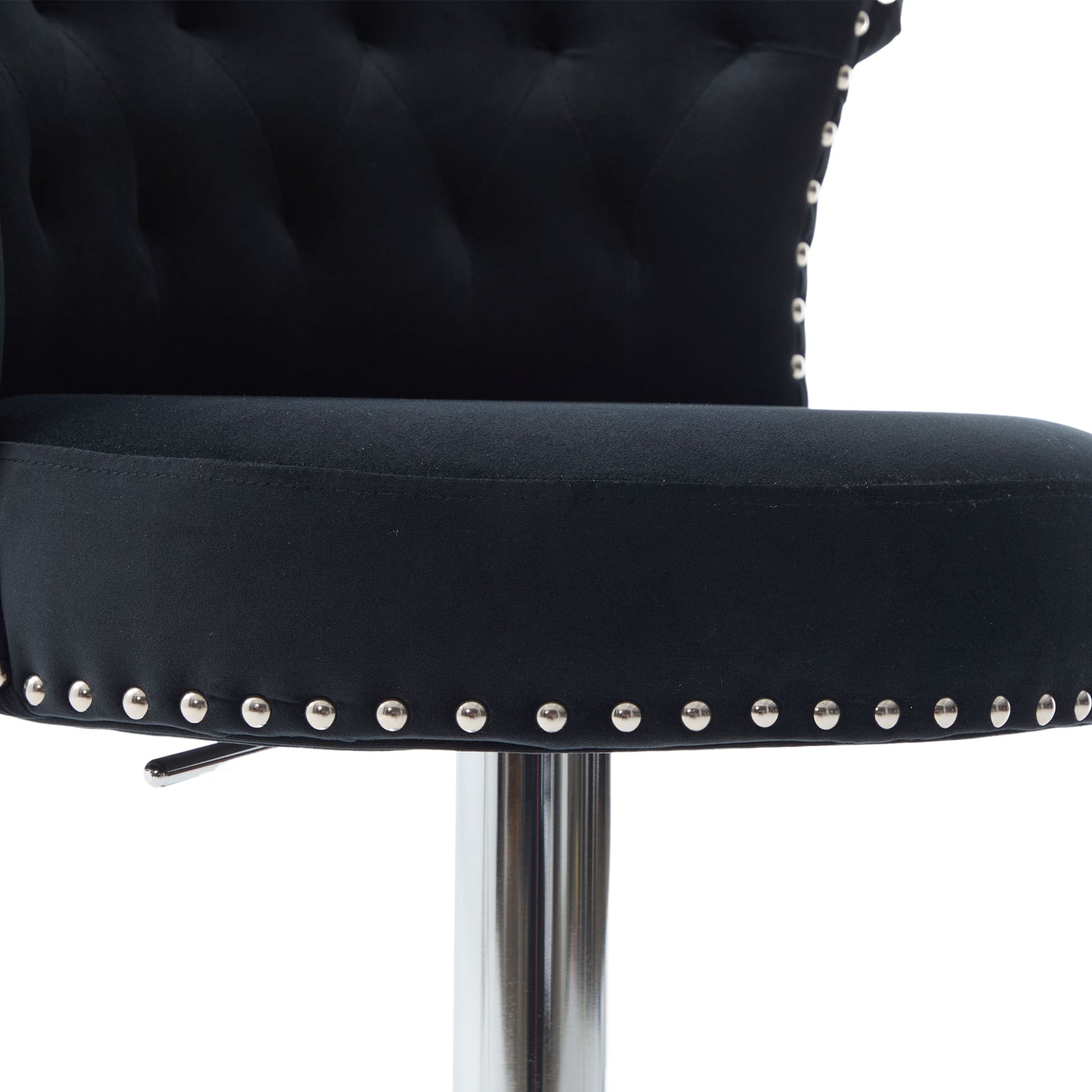 Velvet Bar Stool Set of 2, Adjustable Swivel Bar Stools With Silver Plated Metal Leg, Chrome Nailhead, Counter Height Ch