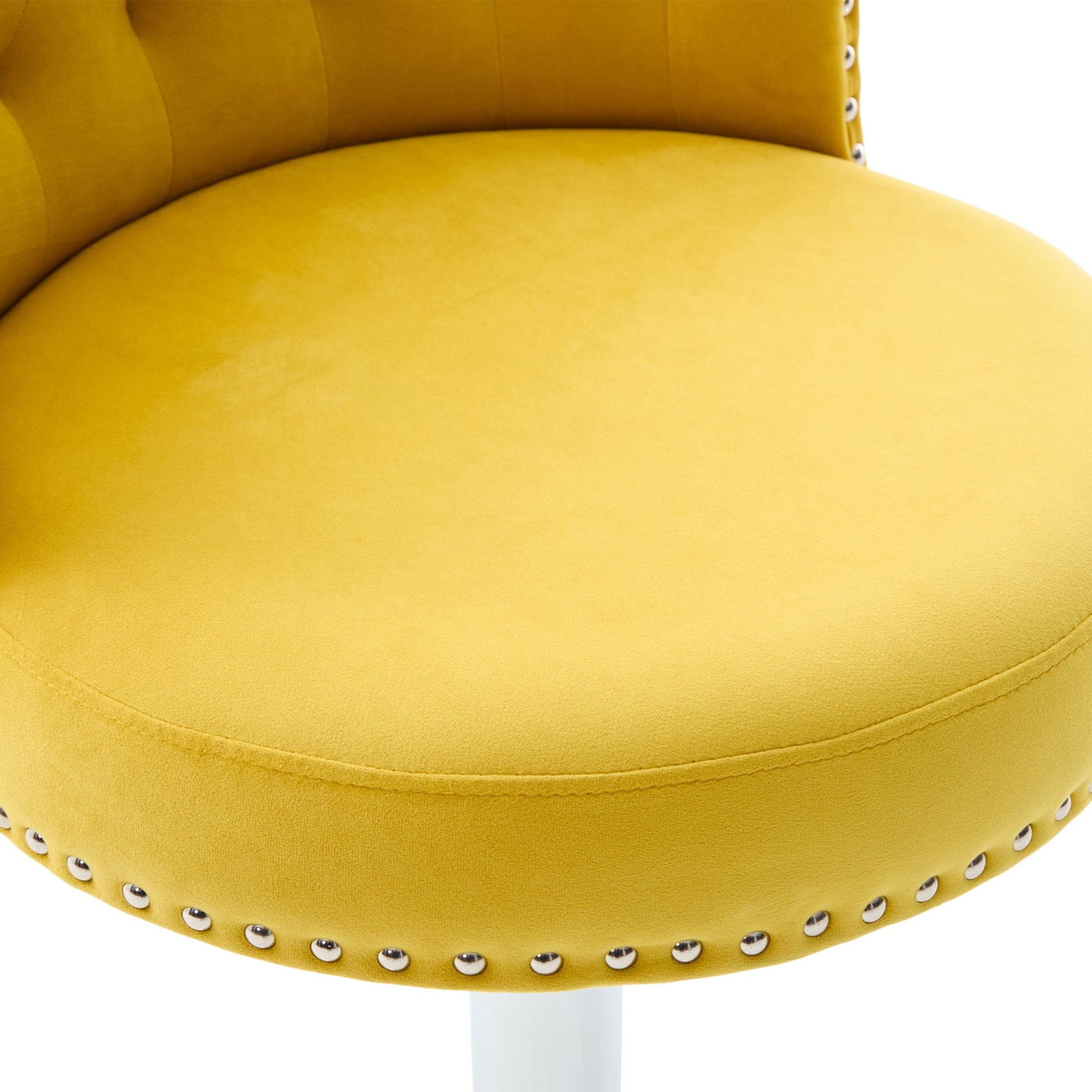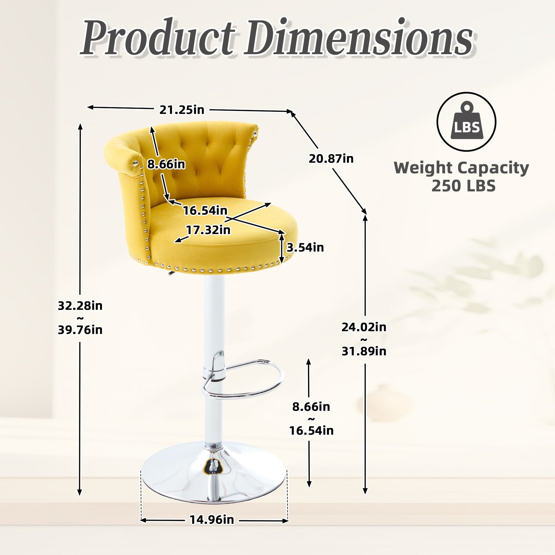 Velvet Bar Stool Set of 2, Adjustable Swivel Bar Stools With Silver Plated Metal Leg, Chrome Nailhead, Counter Height Ch