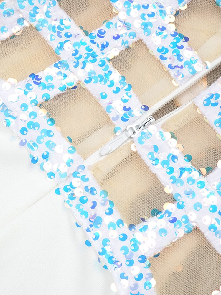 With the dazzling glamour of Midtown as inspiration, this White Evening Gown from BYMANYC ® New York is the ultimate style statement for a red-carpet entrance. It is a key prêt-à-porter piece seen on the New York Fashion Week runways, fusing the sensuality of off-the-shoulder styling with the radiance of sequins.