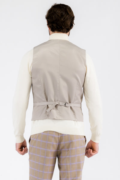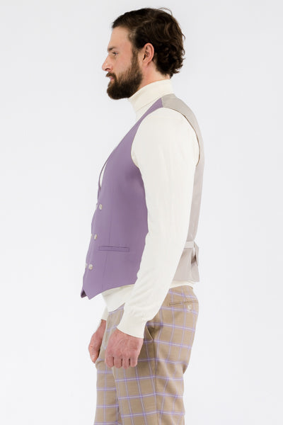 Men's Slim Fitted Suit In A Plaid Pattern With Solid Contrast Vest. Plaid suits are considered fashion-forward because of their clean, modern, and colorful appearance. Plaid suits can be worn for any occasion or event, but they are more formal, so they should only be worn when appropriate. For example, a brown plaid wedding suit can be dressed up or down to fit a range of wedding styles. When choosing a suit, you can also consider details like pockets, buttons, vents, pant styles, and lapels.