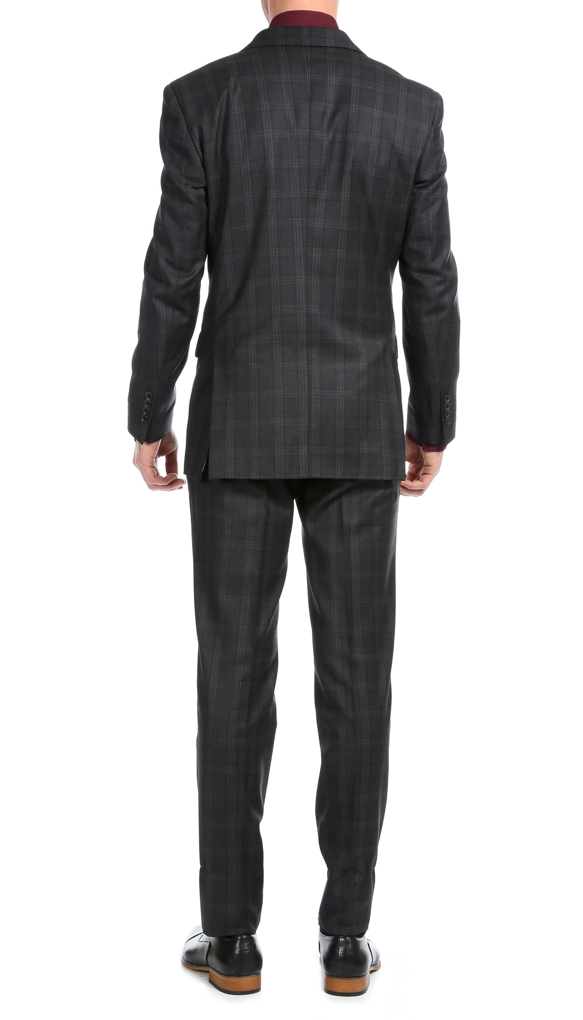 Yves Black Plaid Check Men's Premium 2 Piece Wool Slim Fit Suit